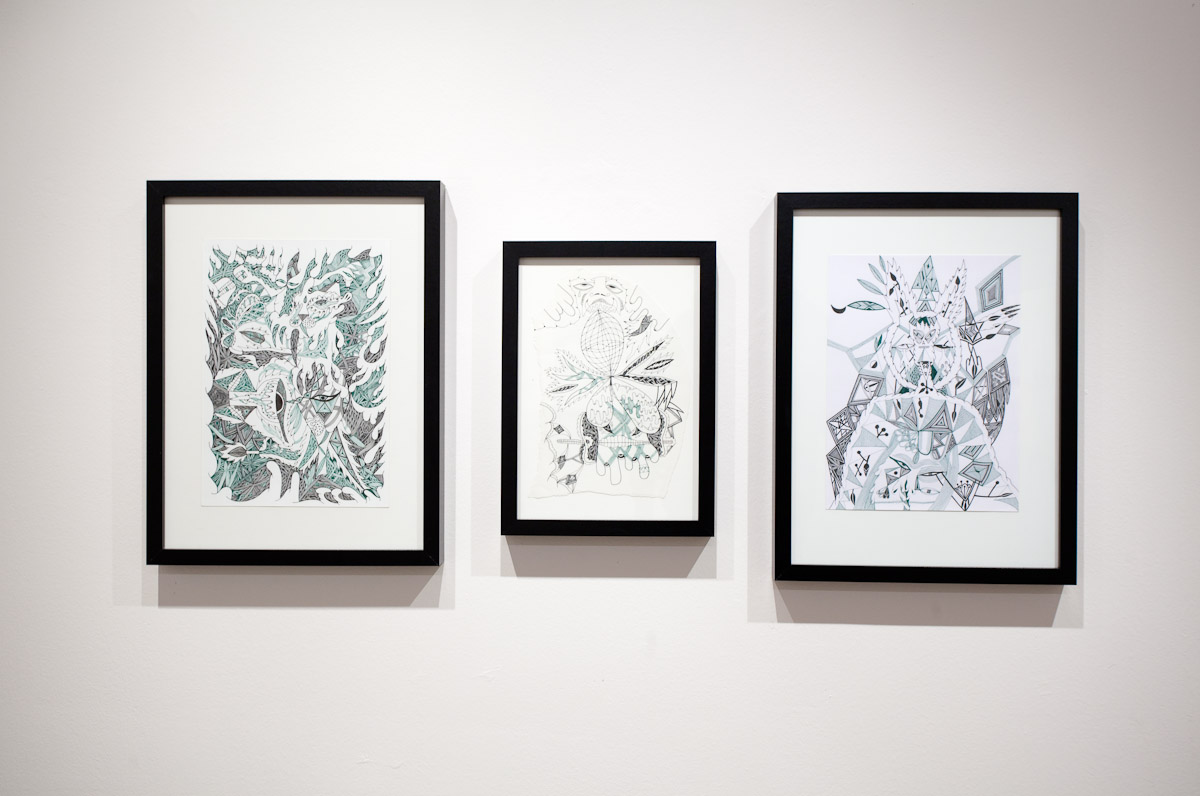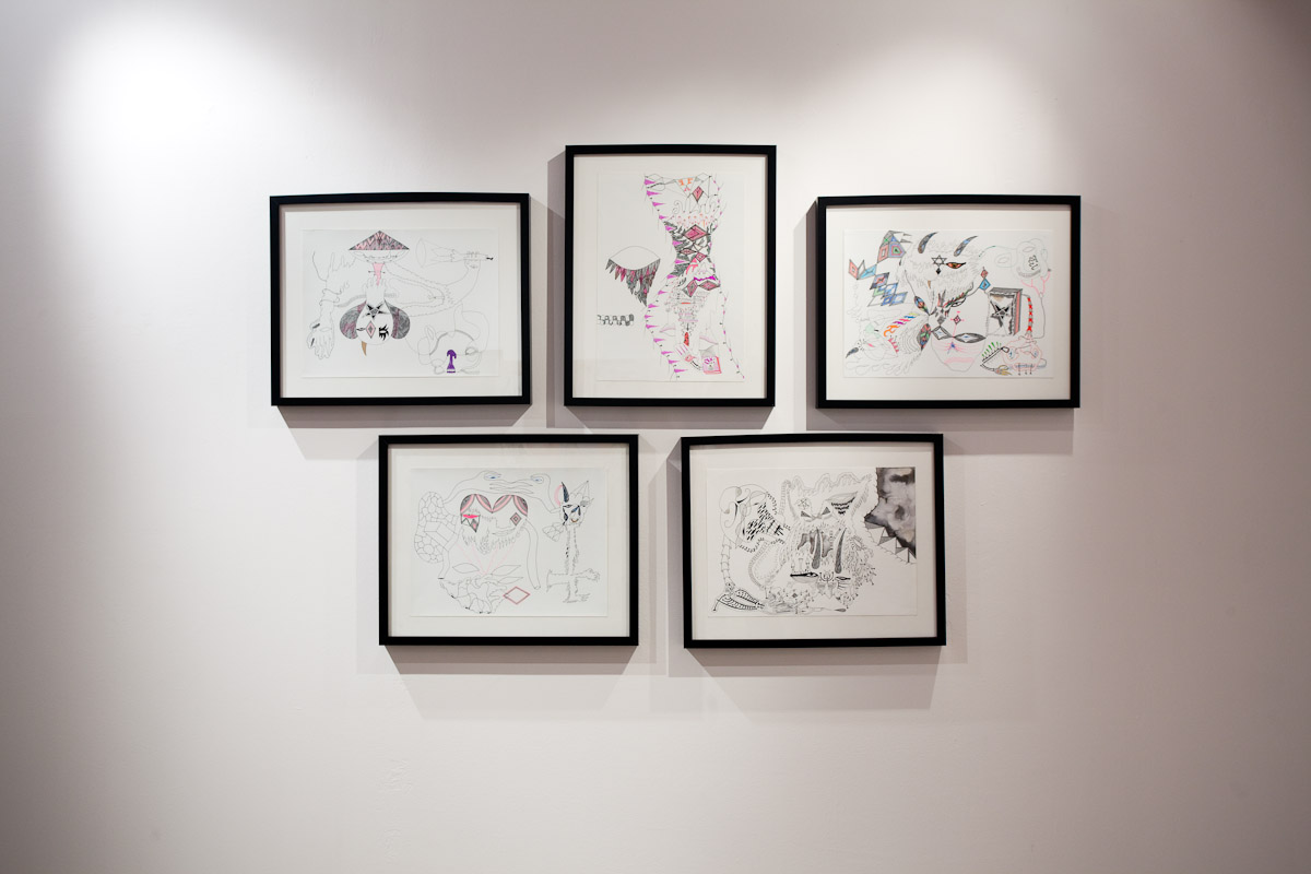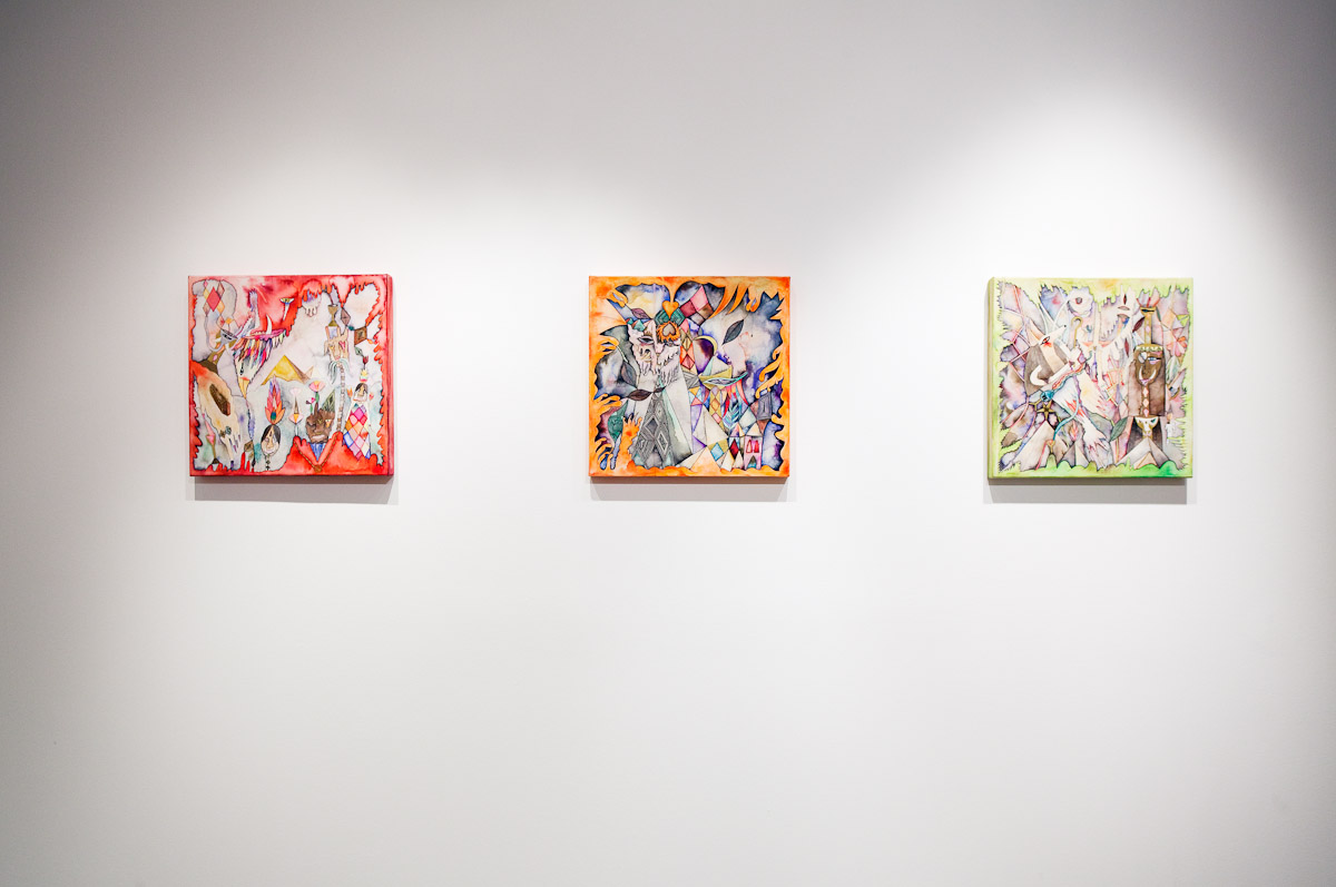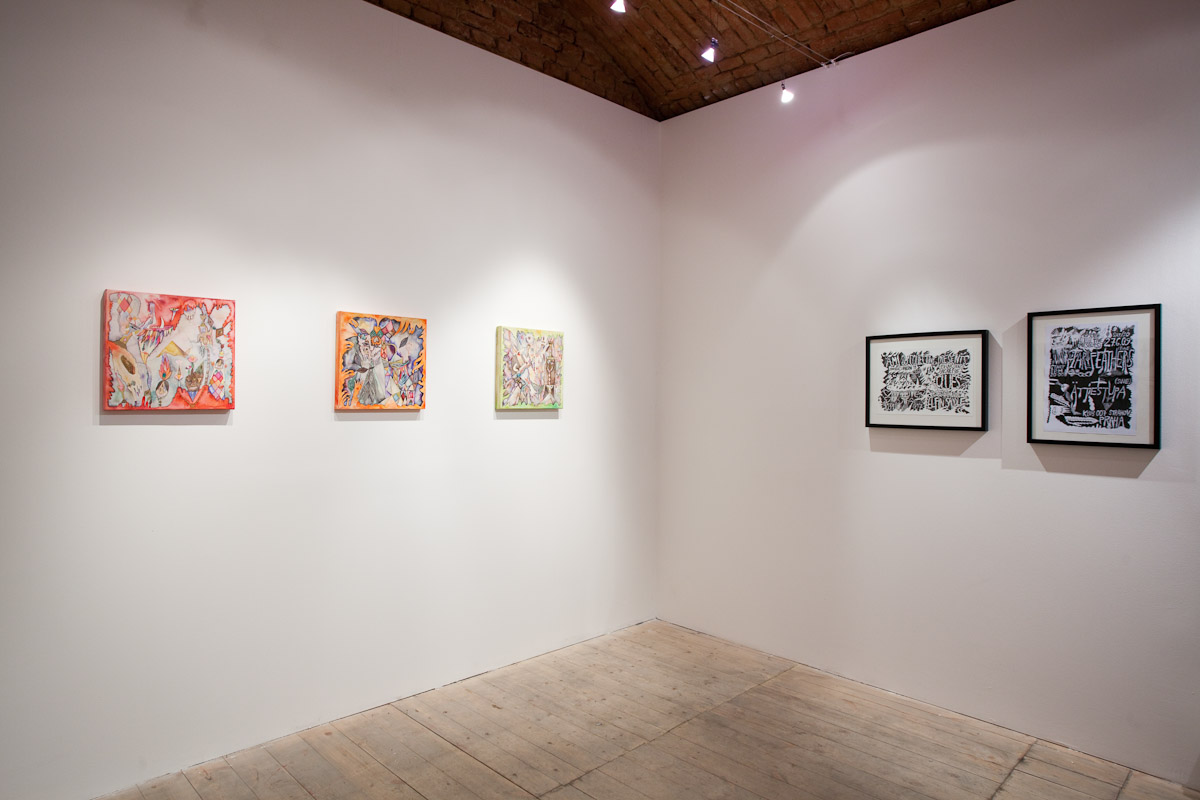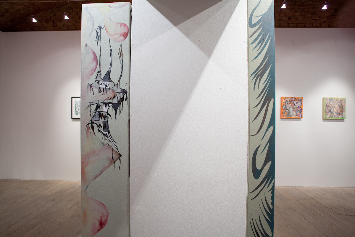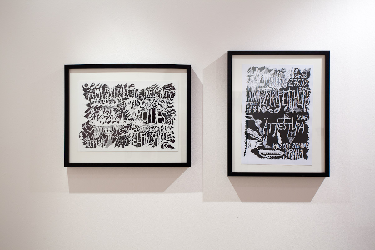 Anežka Hošková je poctivá umělkyně s talentem věci kouzelně zkomplikovat. Tuto výstavu jsme museli po dohodě o rok odložit, protože by se za ní nemohla dostatečně postavit. Její obrazy totiž vznikají kvůli náročné technice velmi pomalu, pracuje na několika cyklech najednou a poslední dobou ve spolupráci s jinými umělci, které důvěrně zná. Tentokrát si do galerie 35 přizvala dva hosty. Vytvořili společně celek, který je příznačně pojmenován Egyptian Reggae. Název odkazuje ke konkrétní kultuře a poodkrývá podstatný rys práce Anežky H. Nejdůležitějším prvkem, se kterým nyní autorka pracuje, je hieroglyf – volně odvozený od toho egyptského. Sledujeme-li její tvorbu zpětně, lze najít jakousi charakteristickou smyčku v jejích kresbách a obrazech prakticky od počátku. Smyčka jako znak životní síly, nekonečná linie klíčící a odkvétající vegetace. Na jejích kresbách, které volně přecházejí v malbu a naopak, se objevuje mnoho podobných obsesivních motivů a jejich neustálým opakováním a přemísťováním vznikají jejich variace nebo ornamentální figurace. Ta se v těchto jejích posledních obrazech rozpadá na drobné části, někdy neúplné, ale dokonale propletené komponenty, které mohou připomínat znaky nebo posvátné písmo, jakým jsou hieroglyfy. Jakoby se od diváka vyžadovalo pozorné čtení, protože je mu předkládán široký arzenál symbolů a znaků nejen z egyptského zásvětí nebo mytologie. Oblíbeným emblémem autorky je astrální symbolika v podobě vševědoucího Božího oka, obelisky a pyramida jako místo styku nebe se zemí, gestikulace lidských rukou, amulety z kostěných náhrdelníků, zlatá barva apod. Anežka často a inovativně pracuje s narativy, jakými jsou například svaté obrázky, magické pomůcky nebo karty. Jak by se mohlo povrchně zdát, estetické sdělení není tím nejdůležitějším. Obrazy a kresby Anežky Hoškové, které mohou působit jako dokonalý cover hudebního nosiče jsou originální záznamy na pokraji automatické kresby. Obsahují hlubší rovinu magie nebo rituální praxe, ale mohou mít čistě praktický účel.