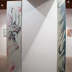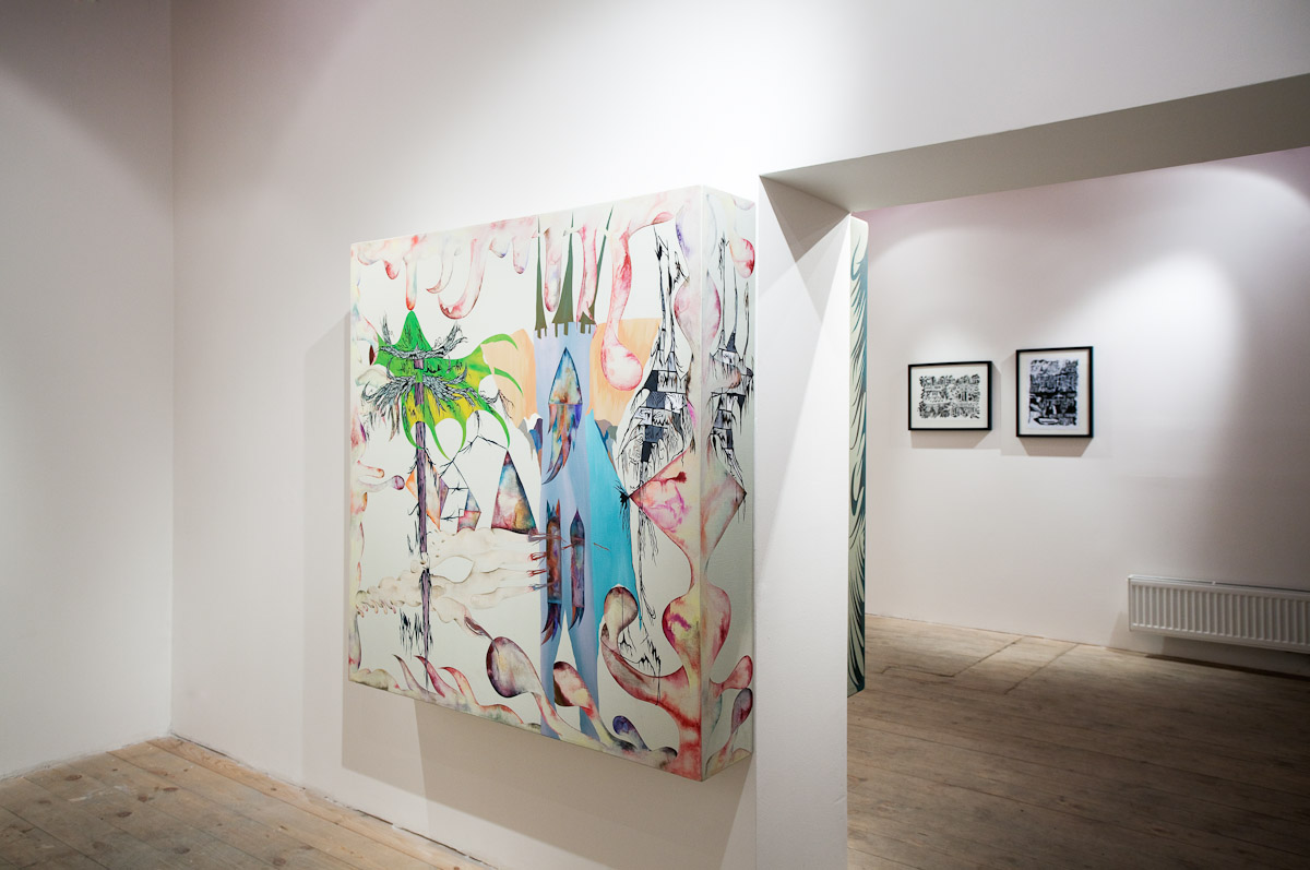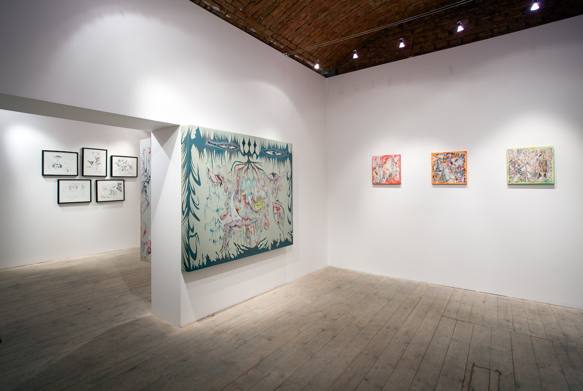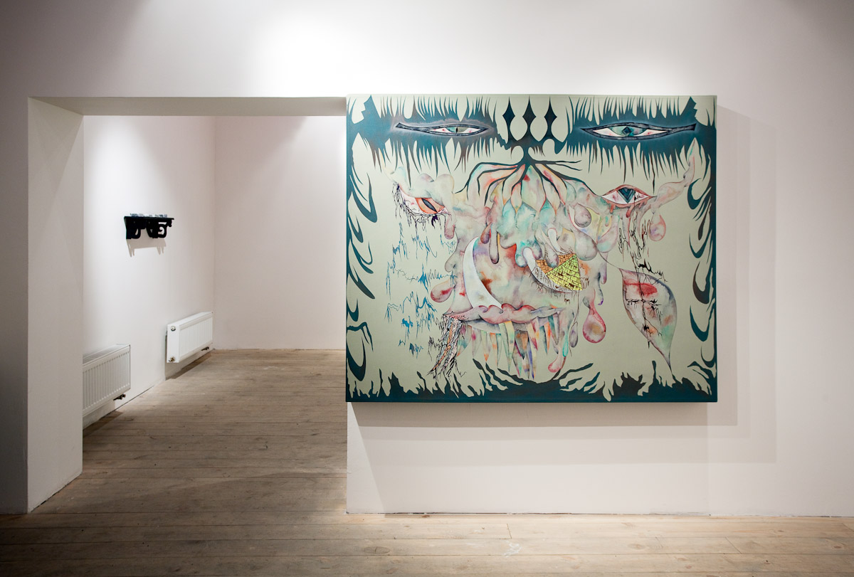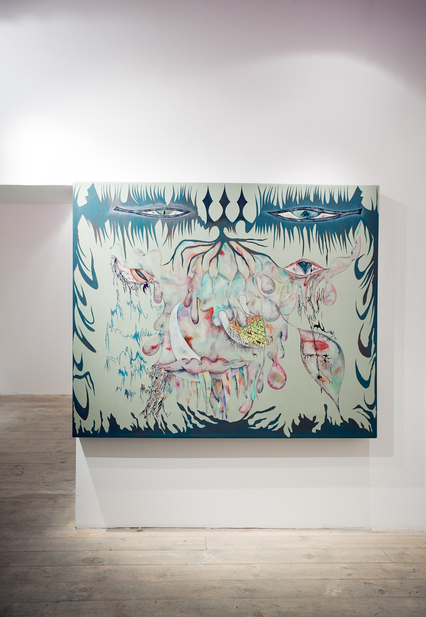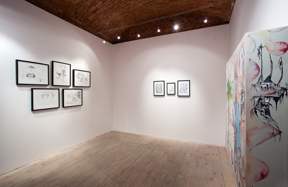 Anežka Hošková je poctivá umělkyně s talentem věci kouzelně zkomplikovat. Tuto výstavu jsme museli po dohodě o rok odložit, protože by se za ní nemohla dostatečně postavit. Její obrazy totiž vznikají kvůli náročné technice velmi pomalu, pracuje na několika cyklech najednou a poslední dobou ve spolupráci s jinými umělci, které důvěrně zná. Tentokrát si do galerie 35 přizvala dva hosty. Vytvořili společně celek, který je příznačně pojmenován Egyptian Reggae. Název odkazuje ke konkrétní kultuře a poodkrývá podstatný rys práce Anežky H. Nejdůležitějším prvkem, se kterým nyní autorka pracuje, je hieroglyf – volně odvozený od toho egyptského. Sledujeme-li její tvorbu zpětně, lze najít jakousi charakteristickou smyčku v jejích kresbách a obrazech prakticky od počátku. Smyčka jako znak životní síly, nekonečná linie klíčící a odkvétající vegetace. Na jejích kresbách, které volně přecházejí v malbu a naopak, se objevuje mnoho podobných obsesivních motivů a jejich neustálým opakováním a přemísťováním vznikají jejich variace nebo ornamentální figurace. Ta se v těchto jejích posledních obrazech rozpadá na drobné části, někdy neúplné, ale dokonale propletené komponenty, které mohou připomínat znaky nebo posvátné písmo, jakým jsou hieroglyfy. Jakoby se od diváka vyžadovalo pozorné čtení, protože je mu předkládán široký arzenál symbolů a znaků nejen z egyptského zásvětí nebo mytologie. Oblíbeným emblémem autorky je astrální symbolika v podobě vševědoucího Božího oka, obelisky a pyramida jako místo styku nebe se zemí, gestikulace lidských rukou, amulety z kostěných náhrdelníků, zlatá barva apod. Anežka často a inovativně pracuje s narativy, jakými jsou například svaté obrázky, magické pomůcky nebo karty. Jak by se mohlo povrchně zdát, estetické sdělení není tím nejdůležitějším. Obrazy a kresby Anežky Hoškové, které mohou působit jako dokonalý cover hudebního nosiče jsou originální záznamy na pokraji automatické kresby. Obsahují hlubší rovinu magie nebo rituální praxe, ale mohou mít čistě praktický účel.