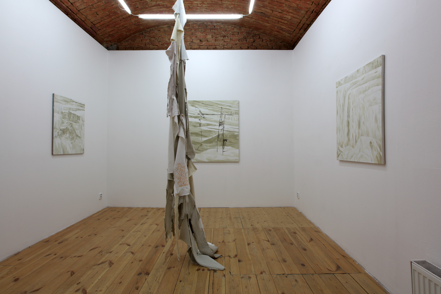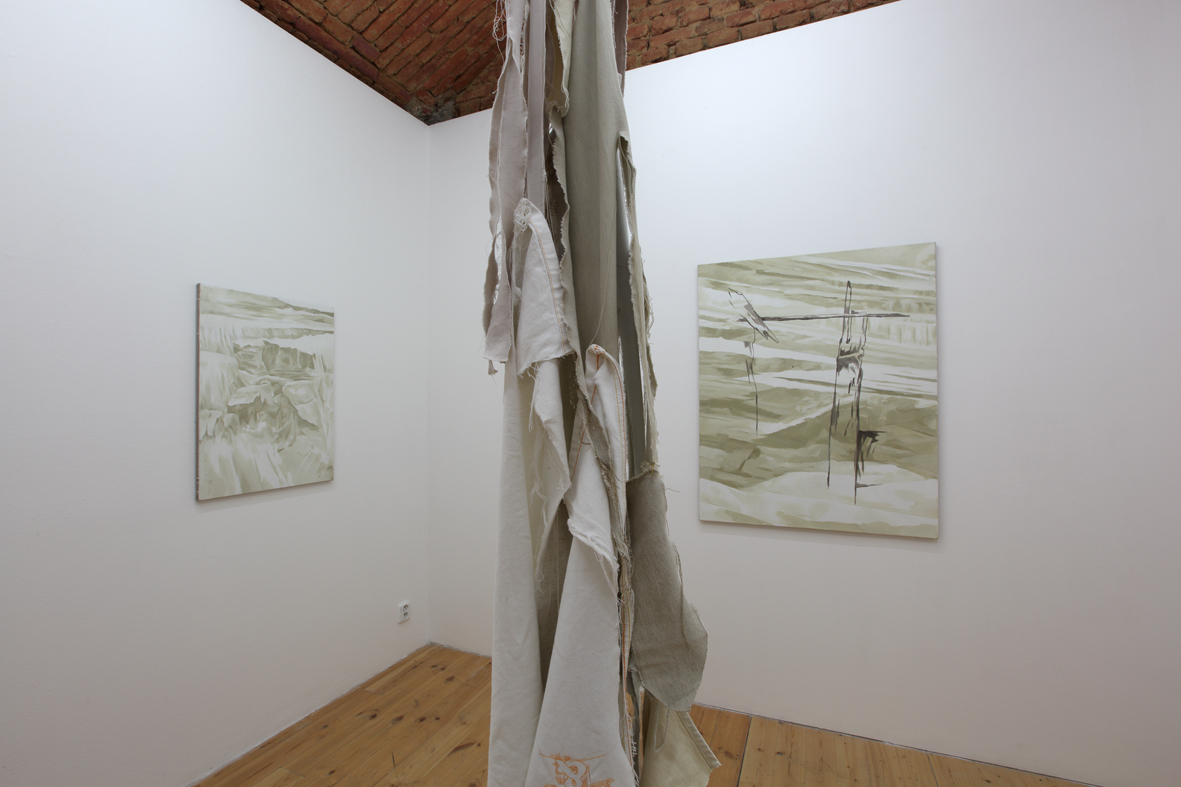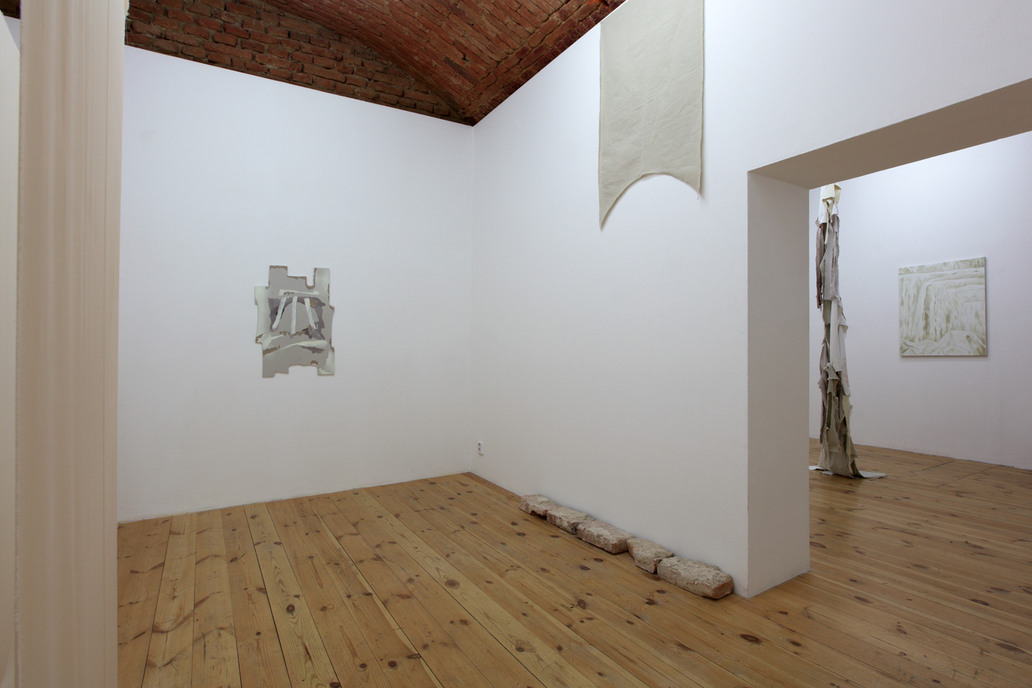 Přivezl nás kamarád. Bavili jsme se cestou o věcech, každej z nás dělá něco jinýho, snažíme se to spojit, vzniká dialog, je to proces a nacházení myšlenky. Vše vzniká pro tuto příležitost, pracujem s prostorem galerie.