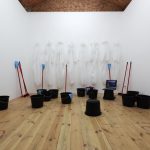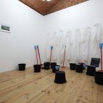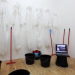 V aktuální výstavní kompozici, kterou Antje Seeger připravila pro Galerii 35M2, dominují použité pomůcky úklidové čety a extrémně zjednodušený geometrický tvar silničního pruhu. Součástí video instalace Between the Lines je kromě autentických předmětů a fotografie z mětské webkamery záznam akce, která se udála 22. srpna 2013 – dva dny před oficiálním otevřením mostu Waldschlösschenbrücke v Drážďanech. Osm osob v bílých pracovních kombinézách omývalo mydlinkami značení zcela nového a ještě nezprovozněného úseku vozovky. Po několika minutách byla akce přerušena policií. Jednoduchá a vtipná intervence založená na nesmyslném aktu mytí, je koncipována jako aktivistický model, jemž má inspirovat především nespokojený živel veřejnosti. Zásah, jenž s úspěchem mediálně rezonoval, totiž představuje otevřenou kritiku velmi nákladné a kontroverzní stavby mostu, z nichž přínosy jsou značně diskutabilní (stavební náklady: 180 milionů eur, náklady na údržbu: 1,3 milionu eur za rok), ale její existence je vlastně nesmyslná. Stavba především zapříčnila fakt, že byl městu Drážďany vyňat ze seznamu UNESCO titul světového dědictví.