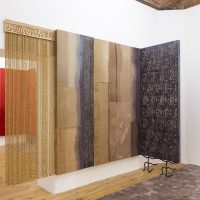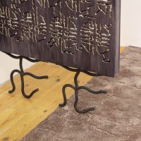 The current exhibition, which makes references to the earlier exhibition’s series of objects (paravent-style folding screens), is loosely inspired by the formal language of these items of furniture that are both utilitarian and decorative. Here, too, the historical context and genesis of the particular piece of furniture plays a central role. In the past, folding screens, originally from Asia, played an important political role. The more decorative and luxurious the paravent, the higher its owner’s social status.