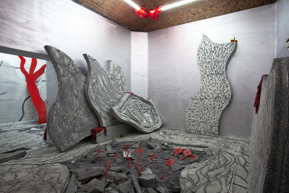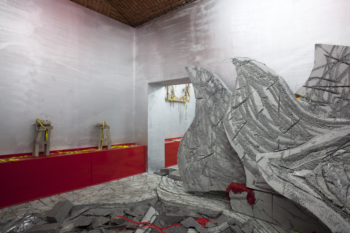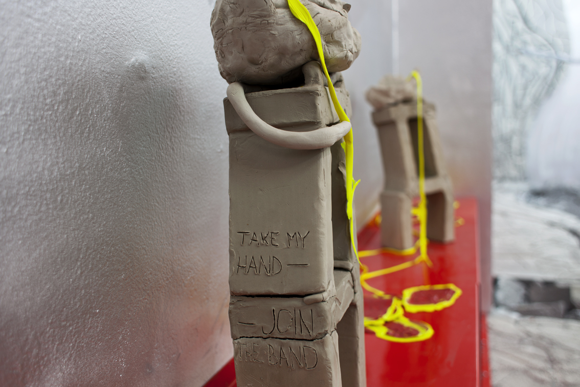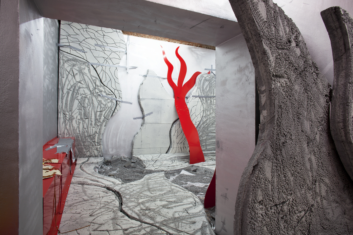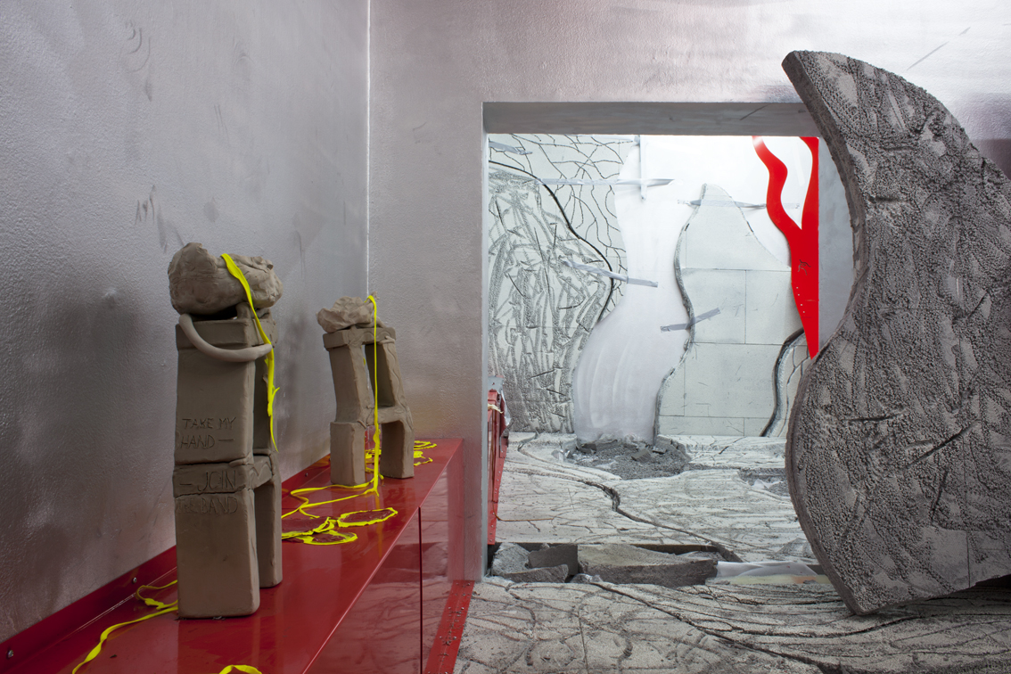 Ezo-zero-zen represents our fascination with Atlantis, that fabled land beneath the surface. Namor Ynrobyv builds an ezo-zero-zen cave in which he reflects on the ideas of rapture, trance, and ecstasy. They are anachronisms, fragments of rituals of the past, and speculative spectacles of the future.