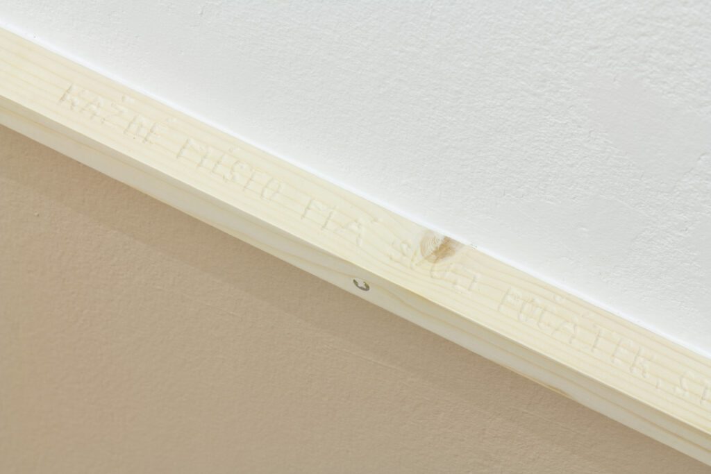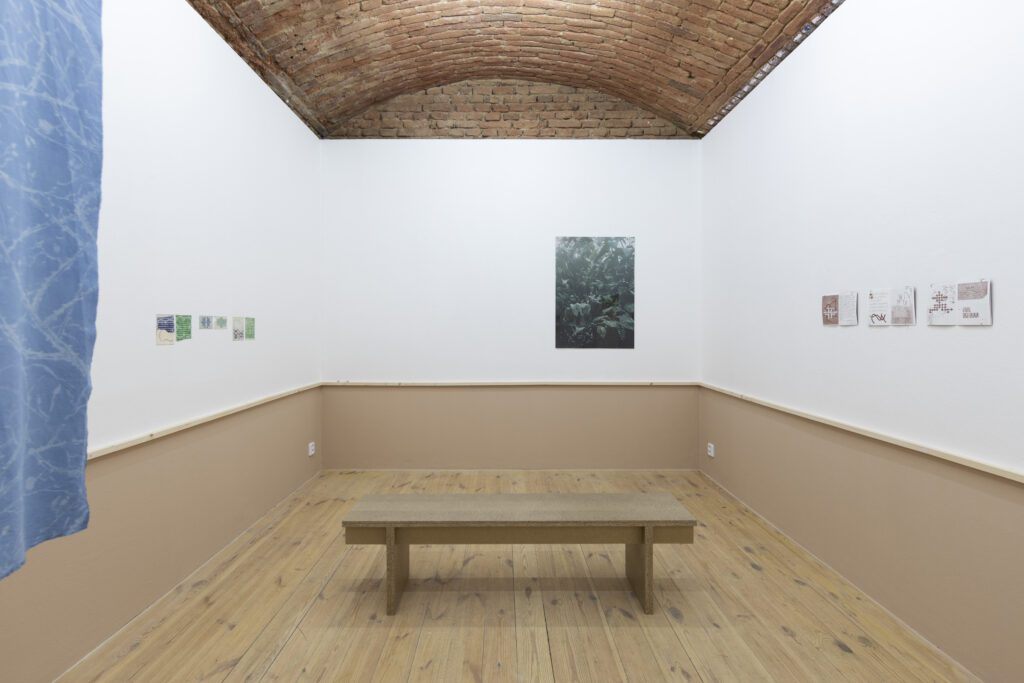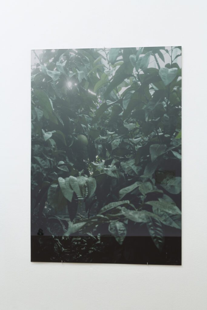 Světlana Malina ve své instalaci propojuje archivní fotografii přírody zachycené ve skleníku či botanické zahradě s introspektivním textem, který zprostředkovává hlas přírody, jež se ocitá na hranici mezi bytím a rozpadem. Slova evokují pohlcení, pozvolné rozložení a splynutí s něčím nehmatatelným – snad půdou, snad samotným časem. Kombinace obrazu a textu otevírá prostor pro vnímání přírody jako citlivého subjektu, jehož přítomnost je proměnlivá, rozpadající se, ale nikdy zcela mizící.