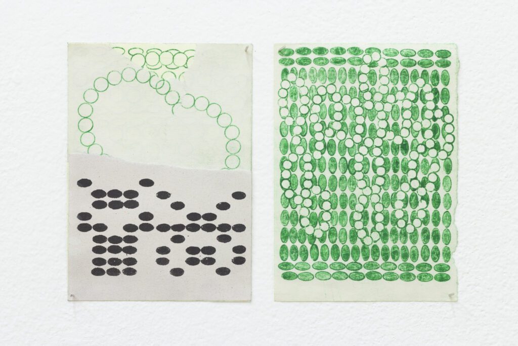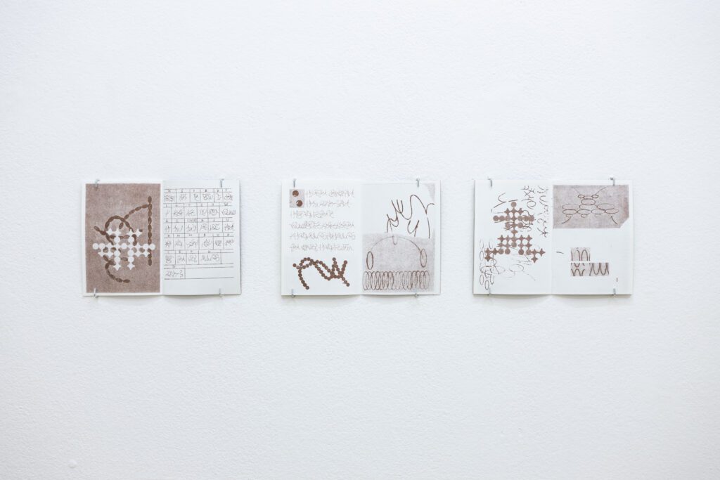 Jovana Ćubović se ve své tvorbě zaměřuje na jazyk hmyzu. Pomocí kresby a papíru simuluje, zaznamenává a analyzuje vizuální prvky jeho komunikace. Ve svých posledních projektech se soustředí na stopy, které na papíře zanechali drobní živočichové. Znaky, jež „vykousali“ tito škůdci, se stávají základem její vlastní abecedy, kterou vyvinula studiem podobností děr a cest v papíru.