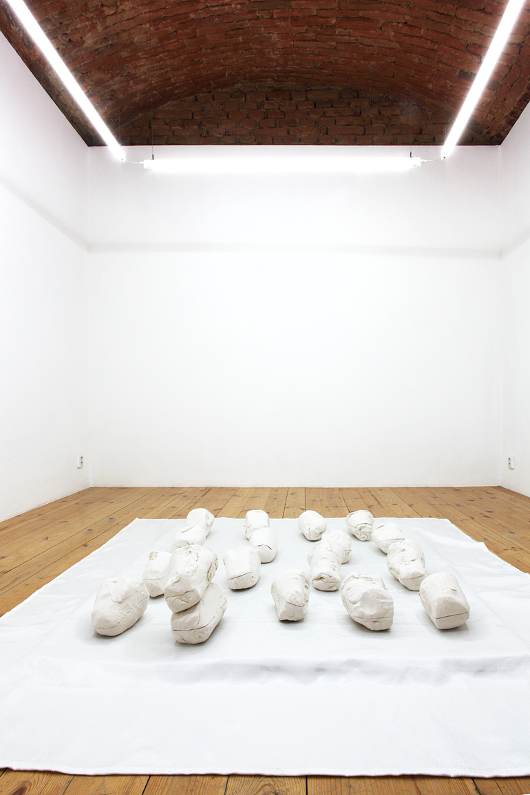 In 18 + 2, Nina Fránková works with the archive of sculptures that she has been adding to since 2015. It has undergone many changes since then, and it will definitely continue to change after this exhibition. The exhibition’s title is based on numerical chance, which is closely associated with the unique evolution of her series of ceramic sculptures. Although at first glance it may seem that her sculptures are in some way alike, they represent individuality in togetherness. Each has been subjected to certain touches, has received attention or special care. We delicately observe a personal ritual that promotes our desire and curiosity to open the various containers. Though unconsciously, Fránková’s work contains certain references to the critique of museums by authors such as Piero Manzoni, Annette Messager, Hans Haacke, and Marcel Duchamp. And, as Walter Benjamin said, “an irretrievable image of the past […] threatens to disappear in any present that does not recognize itself as intended in that image.” The exhibition thus reflects the obsessional relationship between the artist and his or her work as a critique of museum presentation.