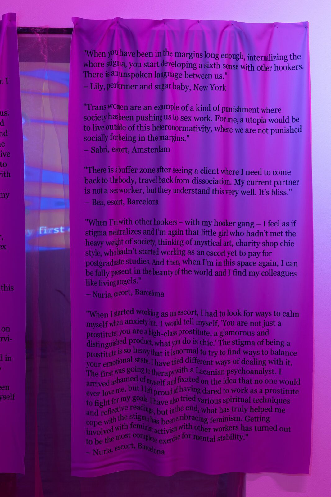 The exhibition project Peripheral Corporalities by artists Yarli Allison and Letizia Miro delves into this community and explores the personal and collective experiences of sex workers. Through collected real stories, the artists aim to create a nuanced portrayal of sex work. They focus on the formation of identity and the sharing of traumas, challenging stereotypes and instead narrating the dreams of those who shape the hopeful collective imagination of the contemporary demimonde.