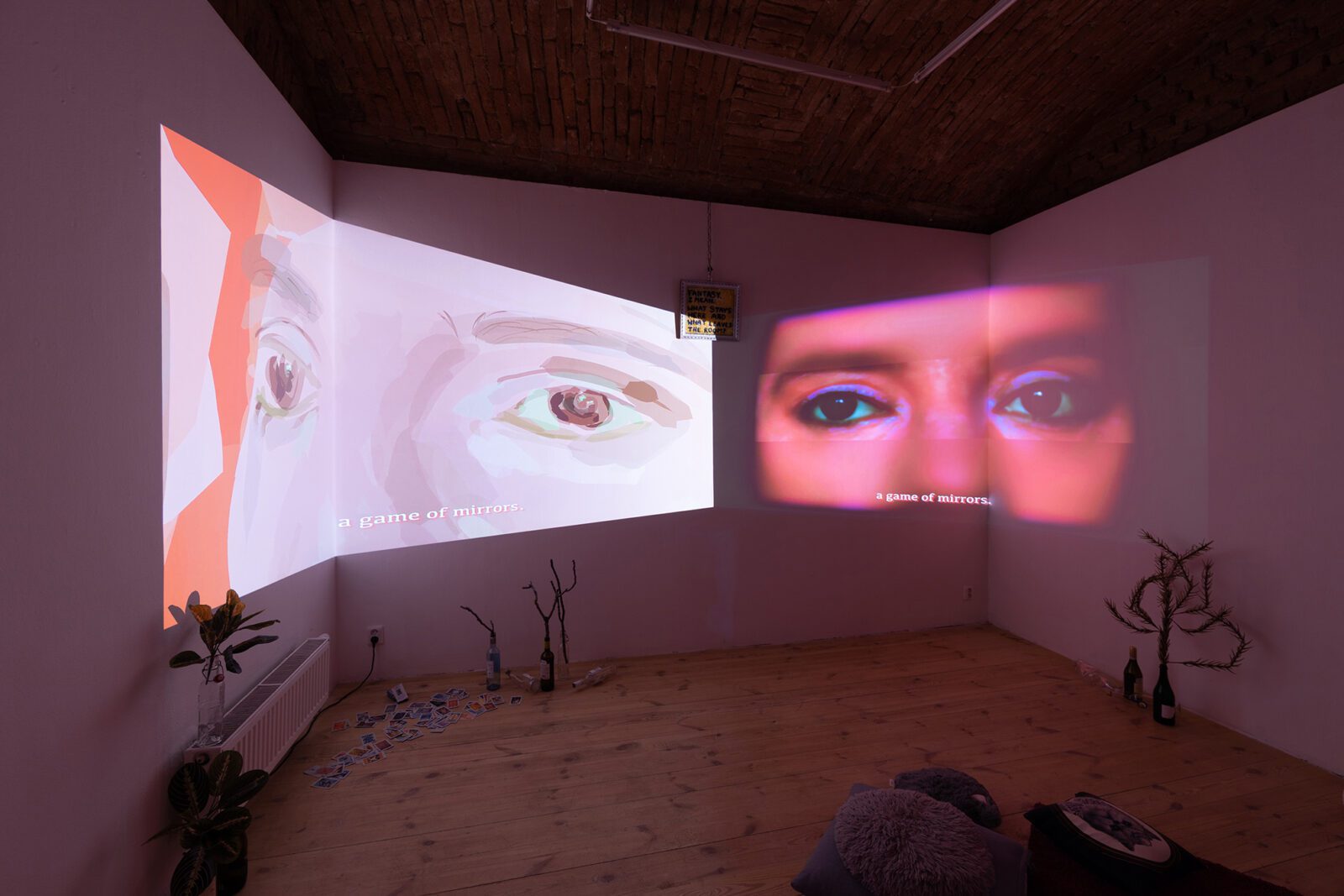 In the setting of a staged room that enhances the intimate atmosphere, they present the two-channel video installation “This is not for Clients,” which invites visitors into the inner world of Letizia Miro, an escort service provider. The video, based on her personal experiences, blends economic and political arguments together with melancholy, anger, joy and beauty. The piece does not offer such a simplistic portrayal as might be expected – glorification or victimization – but instead provides a multitude and depth of thoughts and emotions.