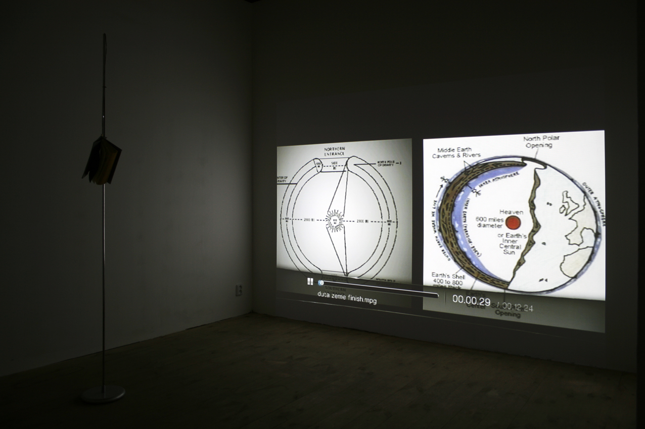 Ohniskem nejnovějšího projektu Hynka Vacka (1981) je kontroverzní teorie o duté zemi. Pro galerijní prostor vytvořil site specific instalaci, zavěšený model duté zemské polokoule do které promítá záznam z družicových snímků. V druhé místnosti Vacek na videu prezentuje chronologický záznam