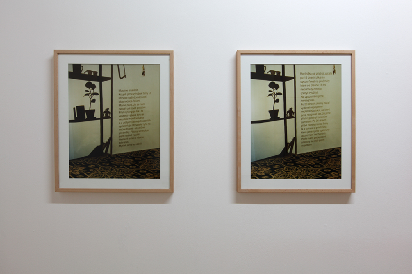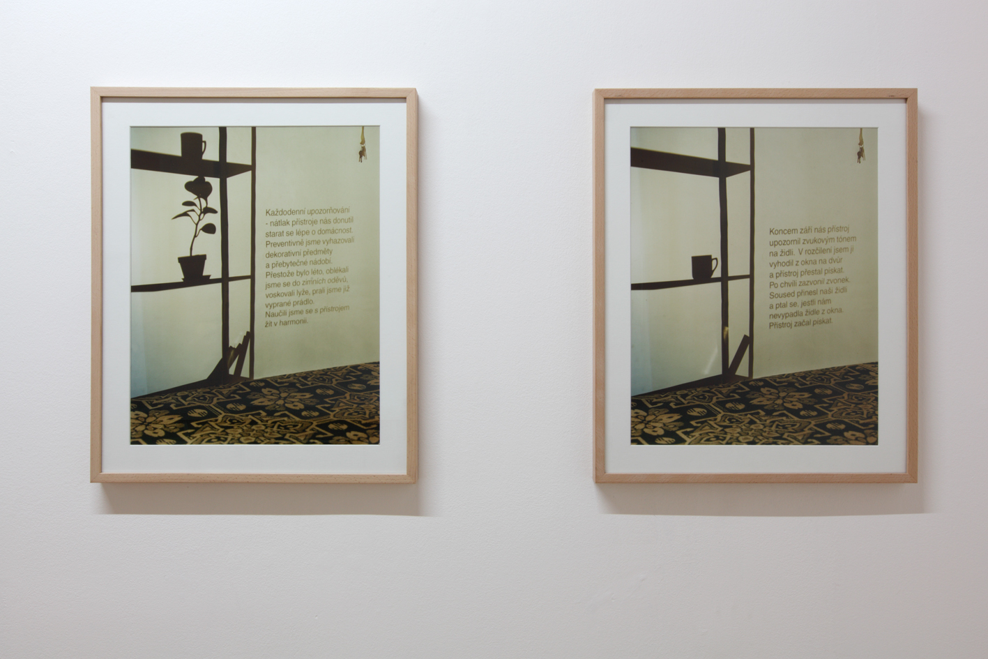 Na aktuální výstavě , kterou Ivan Svoboda přiravil pro Galerii 35m2, se jeden scénář realizuje ve dvou mutacích – videoinstalaci a sérii analogových fotografií. Obsahově navazuje na jeho loňské video Hrnce nebo starší video Flat Number 20. Rovíjí se tu jeho oblíbený motiv domácnosti, důvěrně známého prostředí nebo obývaného interiéru. Do tohoto prostoru vniká vnější element v podobě spotřebiče, jenž není mlčenlivým a praktickým pomocníkem, ale naopak hmatatelným a hlasitým zdrojem nedorozumění. Utopický přístroj, který má udržovat v bytě pořádek, si postupně podrobuje oba členy rodiny, snímá z nich jakoukoliv odpovědnost a chod domácnosti uvrhne do chaosu. Toto nedorozumění řízené zvenčí nelze racionálně pochopit ani vysvětlit, není z něj východisko, ale autor jej předkládá, jako by pro nás mělo být spíše inspirací nebo dokonce modelovou, meditativní stínohrou. Zvláštní je fakt, že v tom, co je nám dovoleno vědět o zdánlivě nepravděpodobném případu, není přítomno cokoliv nevyzpytatelného, potemnělého nebo zlověstného. Ba ani nevšedního nebo dobrodružného. A to i v případě takovéto přepjaté orwelovské perzifláže. Svoboda tu diváka uvádí do zcela vážné atmosféry, kde je sice možné vtipkovat, ale kde panuje nepochopitelná a přece životodárná jednota. Nic exotického nenajdeme ani v příběhu citované prvotiny, kde byl ústředním předmětem ovocný kompot, a jež měla být inscenována v detektivním žánru a odehrávat se v samotné kolébce westernu.