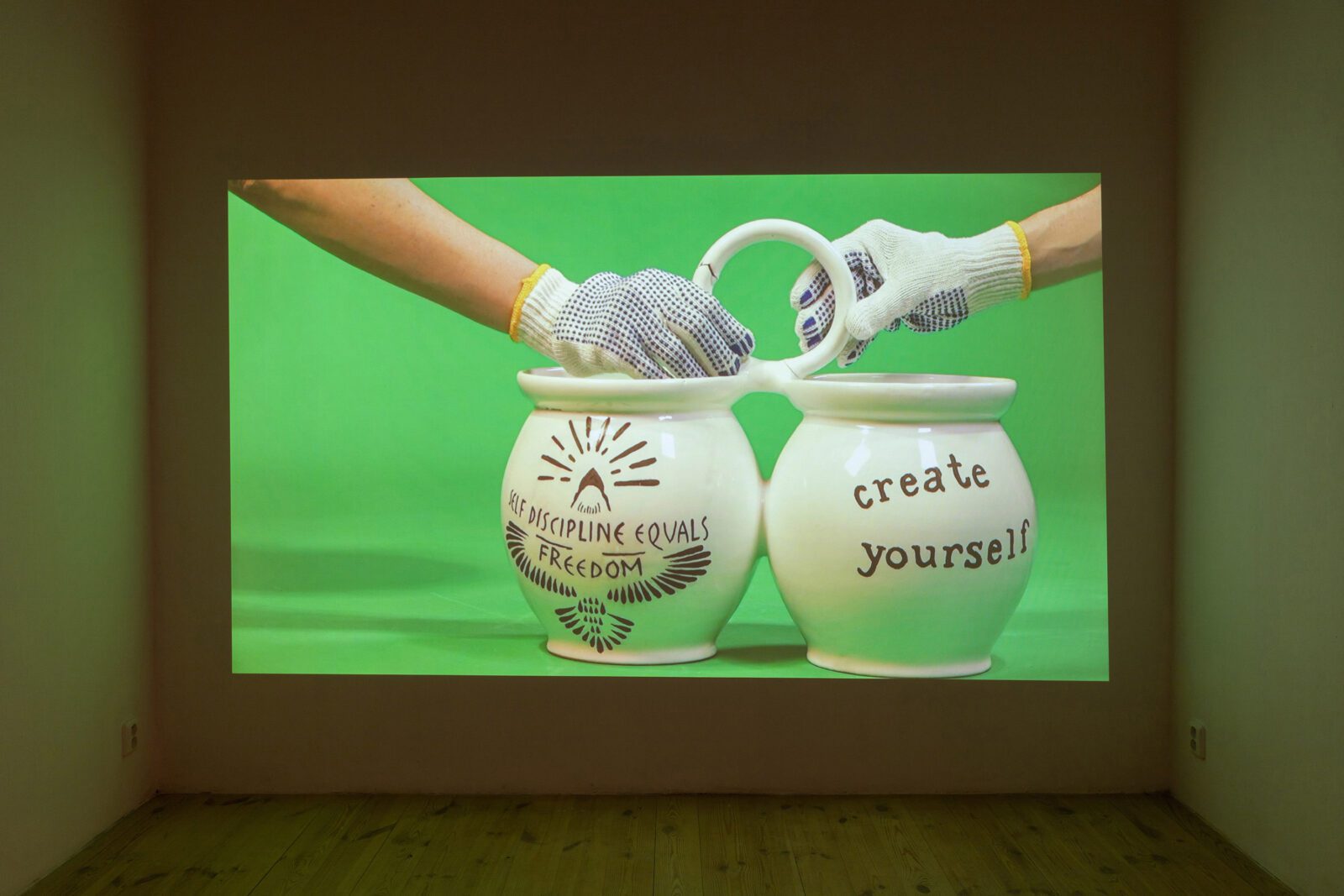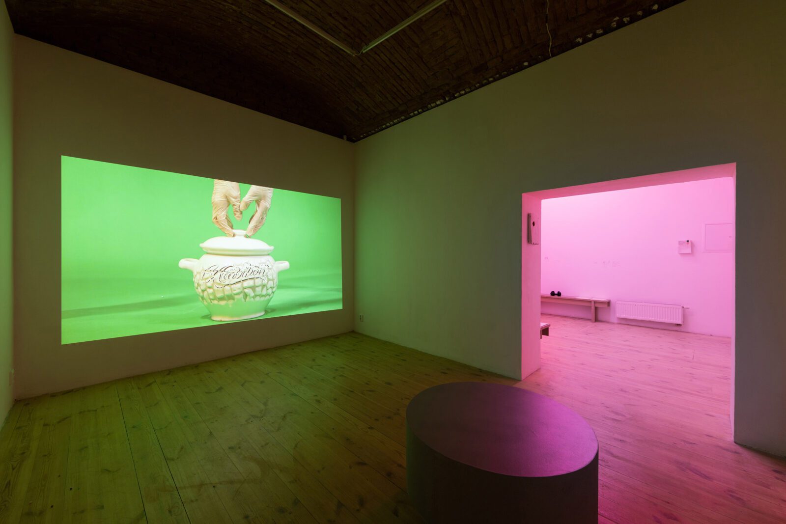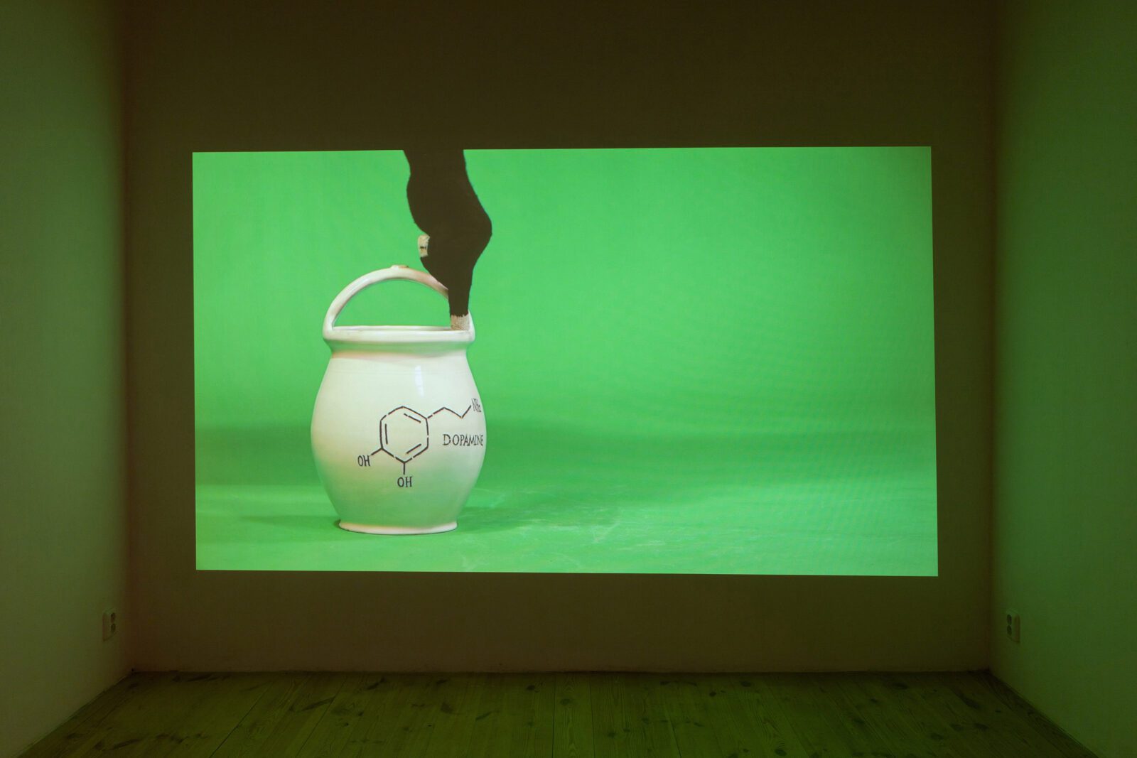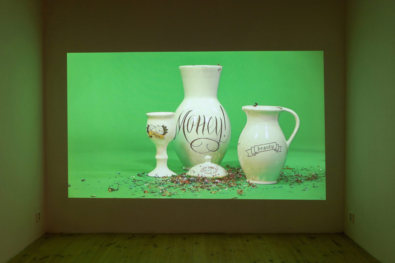 Výstavní projekt Rotující štěstí Jany Kapelové a Veroniky Olejárové je prvním příspěvkem ke konceptu radikálního štěstí představující zápas z pozice jednotlivce, který se snaží v současném světě plném krizí najít odpověď na otázku, jak dosáhnout rovnováhy a prožít šťastný život nebo alespoň jeho momenty. O tom, jak s těmito rotujícími momenty štěstí pracovat v každodenní hektičnosti, pojednává dílo Veroniky Olejárové. Vychází v něm ze svých vlastních zkušeností s prožíváním fyzické radosti, které se snaží předat diváctvu formou zvukové nahrávky a drobných kreseb. V nich tematizuje naši častou neschopnost tyto momenty rozpoznat a řádně procítit. To zároveň může souviset s různými cíli, které si stanovujeme, a hodnotami, o které usilujeme, když se snažíme štěstí dosáhnout. S lehkou dávkou nadhledu a ironie, ale i se vší vážností k tomu přistupuje Jana Kapelová ve svém uměleckém projektu Radosť, kde analyzuje informace, které se k nám dostávají prostřednictvím výzkumů a odborné psychologické literatury o vlivu čtveřice tzv. hormonů štěstí (dopamin, endorfin, serotonin a oxytocin) spolu s podněty z motivační literatury a videí kolujících po sociálních sítích soutěžících o počet shlédnutí a „lajků“. Reflektuje tak i to, že touha po štěstí a radosti už není doménou filozofie a morálky, ale biochemie a byznysu. V hlavní roli vystupují keramické nádoby jako metafory tužby po osobním naplnění, kdy každá z nich představuje jiné cíle a hodnoty, a tedy i jiné způsoby satisfakce.