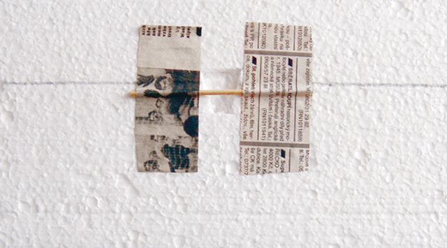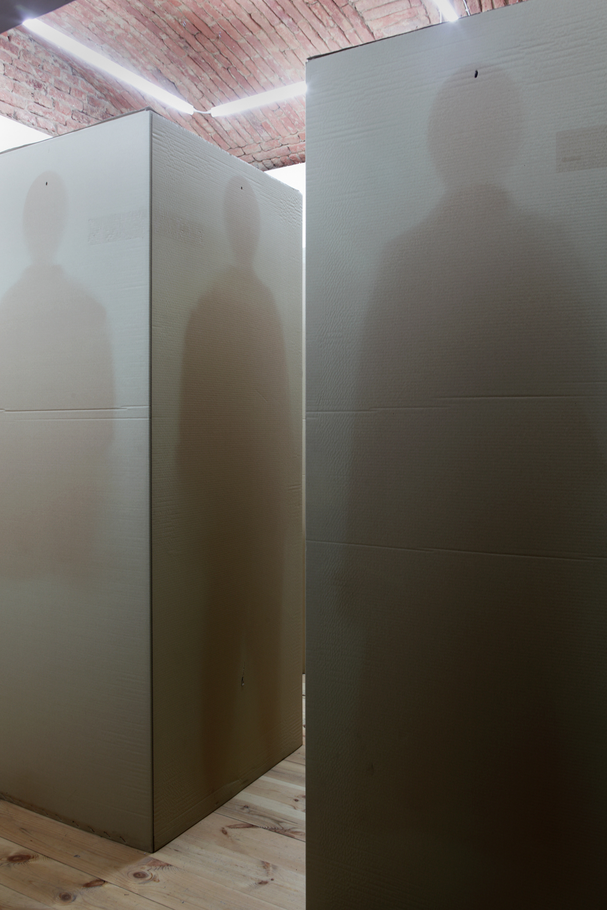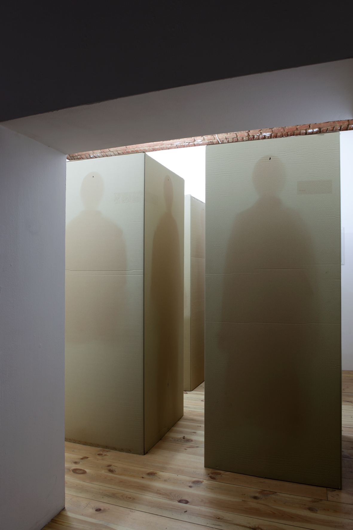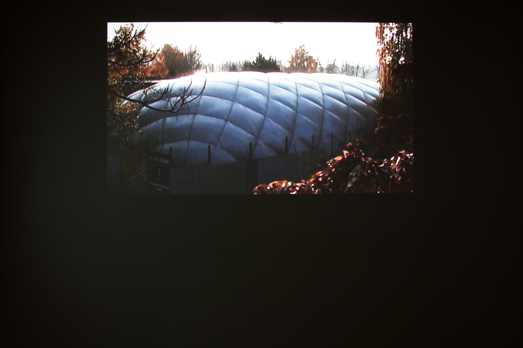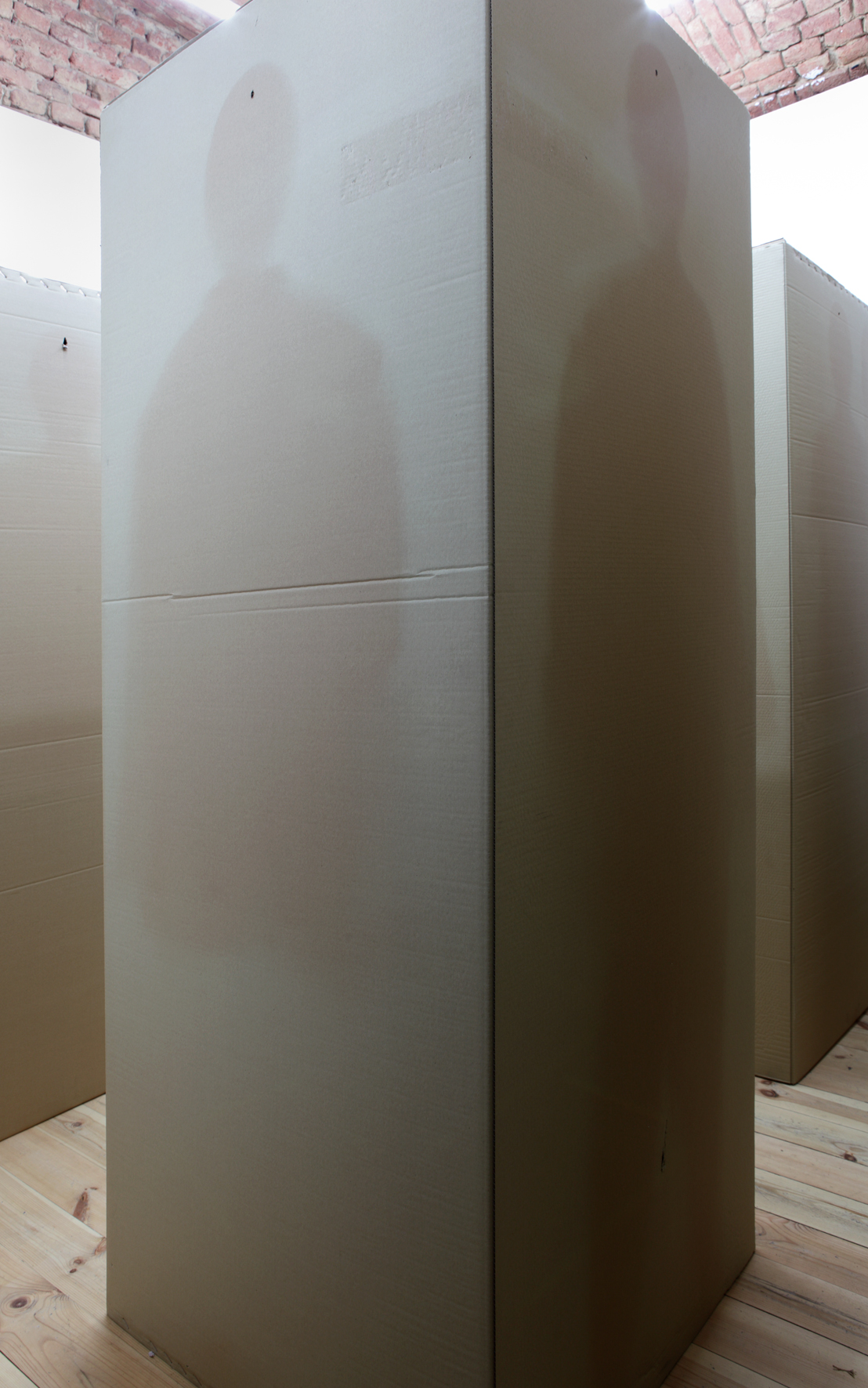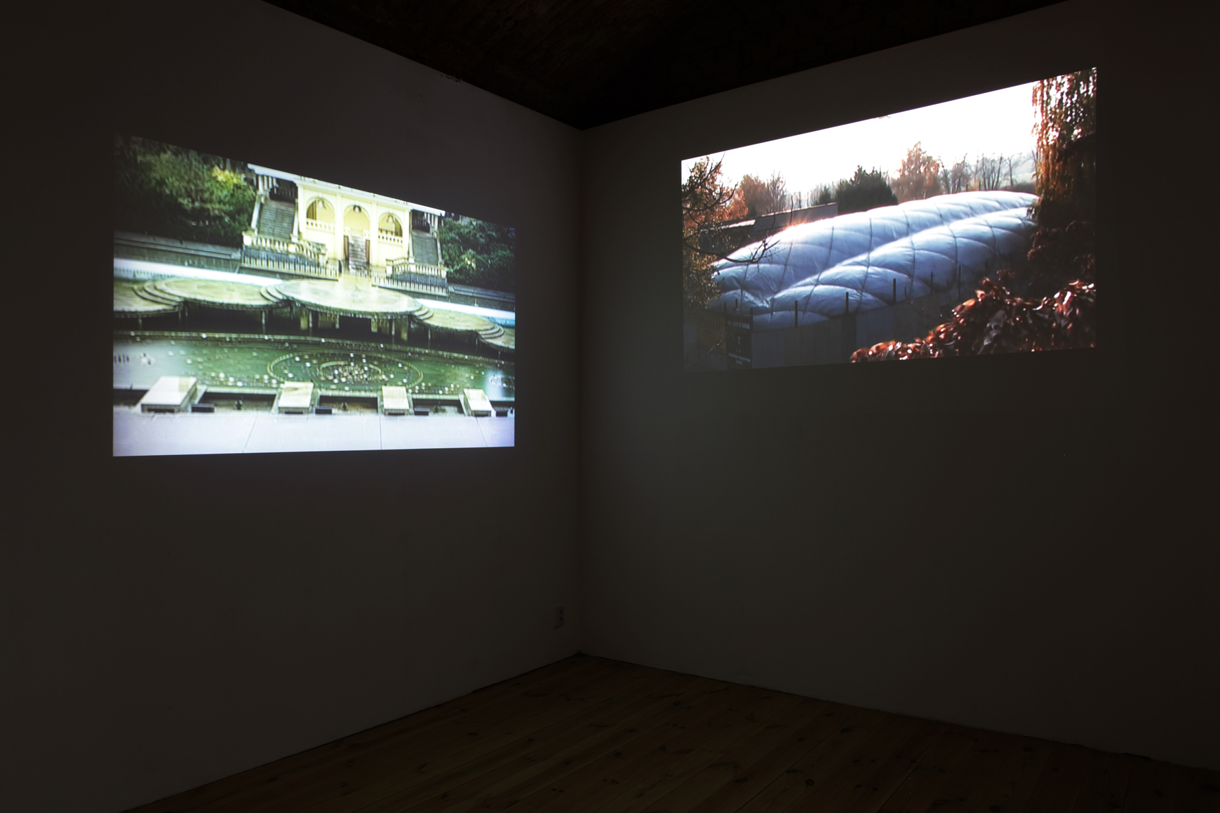 První část instalace v galerii 35M2 tvoří papírové objekty pocházející z výstavy ze zemědělského muzea. Je z nich vytvořena poněkud klaustrofobní prostorová geometrická osnova. Divák je zde konfrontován pouze s částí nepřítomného celku a s předměty, které již ztratily původní funkci. Tato skutečnost ale nijak nebrání, abychom hnědavé stopy na hnědavém povrchu nemohli vnímat jako bezděčné a samovolné fotografické stíny neznámých událostí. Druhá část sestává ze dvou pohyblivých obrazů s krajinným motivem, který zde volně inovuje zmíněný postup – vyvažování patosu a lapidárnosti. Na jednom sledujeme pneumatický pohyb sportovní haly připomínající dýchání a na druhém déšť, který se snáší na fontánu mimo čas její aktivní sezóny. Obě spojuje jakási ezoterní symbolika přirozeného pohybu a základních principů, jež mají působit oživujícím způsobem.