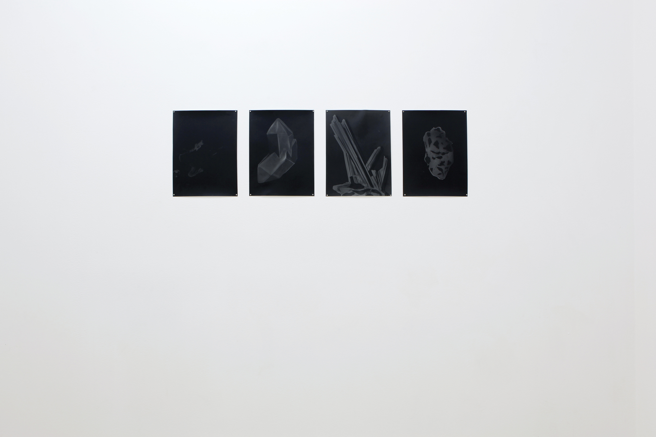 Černobílé obrazy knižního formátu Laďi Gažiové otevírají stránky fiktivního krystalografického alba. Jednotlivé listy zobrazují konkrétní nerosty a působí jako grafické tisky nebo kresby. Vznikly však prostřednictvím techniky fotogramu – přikládáním předmětů na fotopapír, následným působením světla a chemickým procesem. Zvolená technika fotogramu původně využívající fotogenickou stopu trojrozměrných předmětů, se v tomto podání vtipně obchází a předmětná realita se nahrazuje plošnou iluzí vyřezávaných šablon. Vznikají věrné a originální otisky pomocí světla – podobně jako photogenic drawings (vědecké ilustrace z půle 19.století). V tomto případě ale nejde o zapisování reality, ale o originální vazbu fotografie s klasickou malířskou zobrazivostí, rafinovanou vizuální hru, kde se pomocí světla vytváří nepřímá stopa.