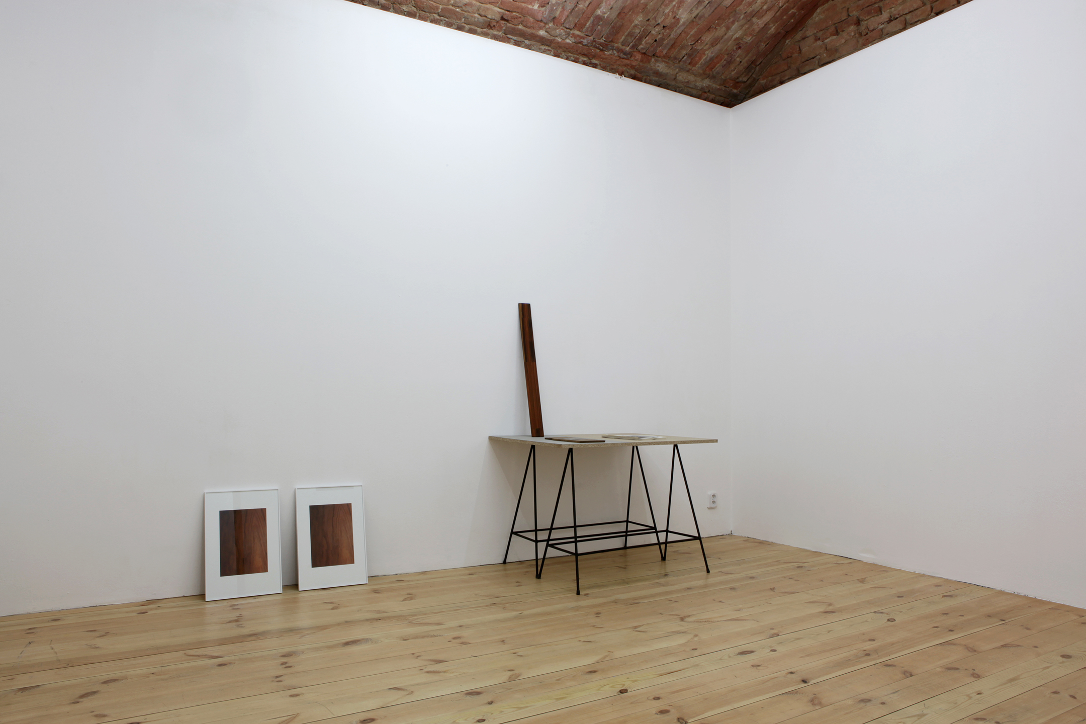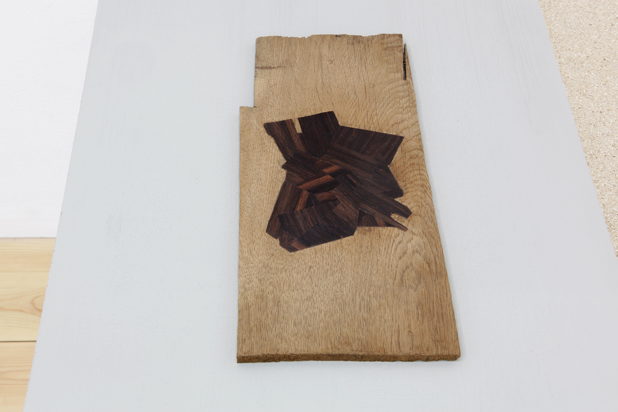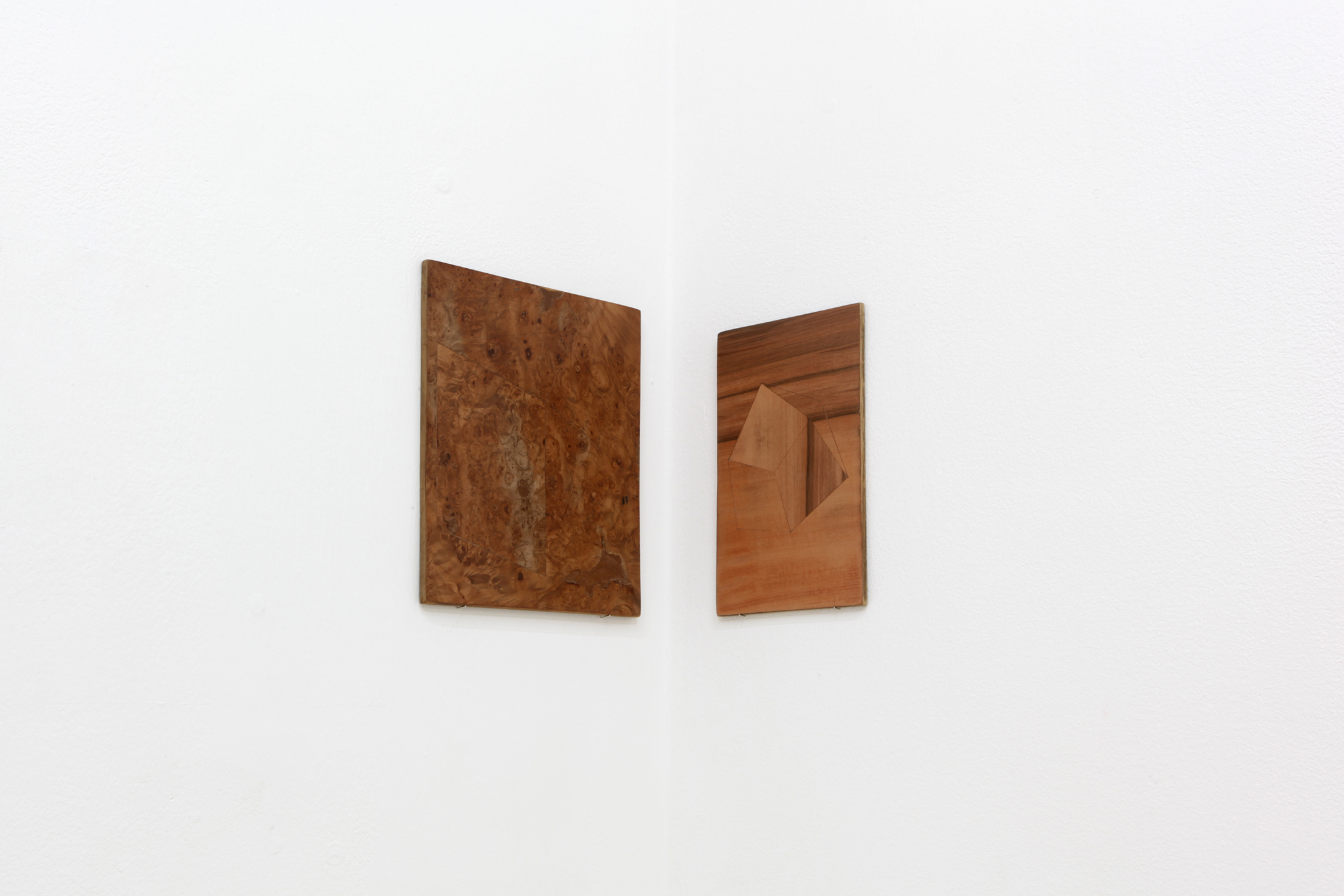 Plošné a neiluzivní kompozice Petra Faba vznikly technikou intarzie – skládáním a fixací dýh do obrazců s ohledem na barvu a strukturu dřeva. Pomocí této organické techniky se volně imituje morfologie anorganické hmoty. Navíc není zcela jasné, jedná li se v tomto případě výhradně o fotografické koláže, objekty, obrazy nebo jejich dokumentaci formou obazové publikace. Způsob instalace i adjustace napovídá, že na tom zřejmě nezáleží. Fabovy kompozice též mohou lehce připomínat anonymní nebo lidové umění z naší nedávné lokální historie. Důležitost zde nespočívá v autorství ani v médiu, ale v ošidné materiálnosti vůbec a také v povaze samotné dekorativní techniky intarzie. Ta kdysi ve svých počátcích mechanicky napodobovala kamenné mozaiky; až později přecházela přes geometrické obrazce k jiným vzdálenějším motivům. Díky tomuto souboru si uvědomíme, že existují elementární výtvarné formy a schémata nezávislé na čase. Například v barokním užitém umění lze zpětně nalézt specifické fazetování připomínající kolážovou estetiku kubismu atp.