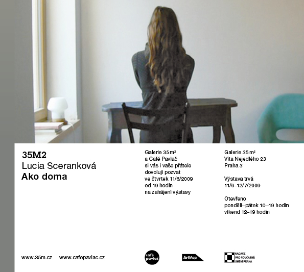 Název výstavy, kterou připravila Lucia pro galerii 35m2, zní dost nostalgicky. Obsahuje v sobě vzpomínku na něco, co minulo nebo teprve přijde. Ako doma je též název ústředního videa, které je sekvencí několika statických záběrů ze tří různých interiérů. Domov se tu jeví jako snové místo, které může být zároveň imaginárním tělem