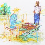 Teplo, které se autorce zařezávalo do kůže a vzduch, který na její kůži nechával slané mapy, šlo využít jen bezmála k práci na velkém projektu. Díky tomu, Mičíková zvolila až netradičně vídanou formu, tradiční plenérové práce. Jakoby si to dané místo žádalo. Zpomalit. Zregenerovat. Zavzpomínat. Dennodenně se vrhat do olivových hájů a přemýšlet v šumění stříbrných listů nad jejich dlouhověkou existencí. Jejich pokroucené a propletené kmeny (těla) tu musí být již přes tisíc let. Kolik toho zažily, aby jejich tvar a hluboké kořeny zůstaly do dnešních dnů? A jak dlouhá je vlastně ta naše lidská existence?