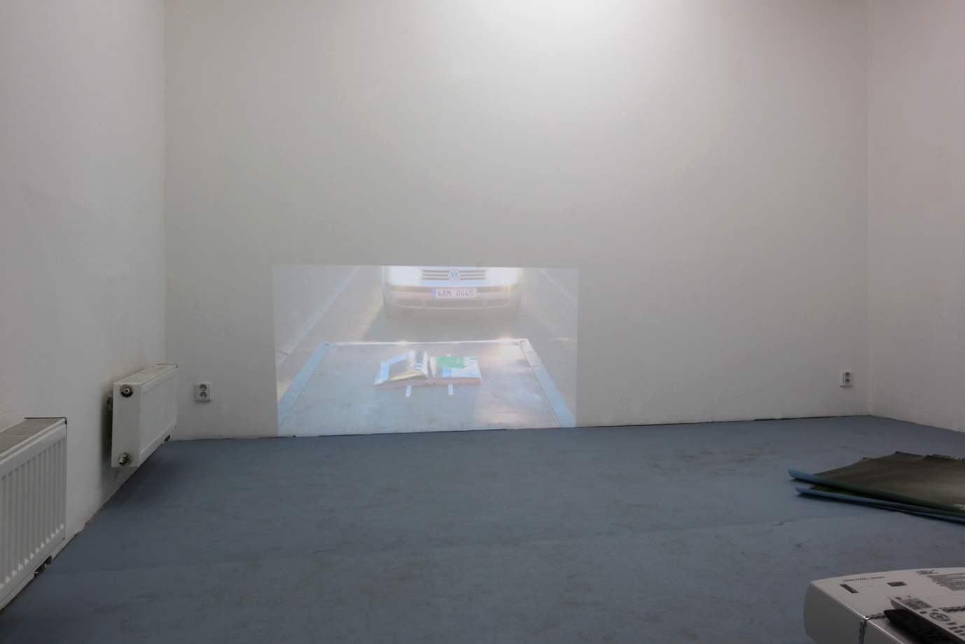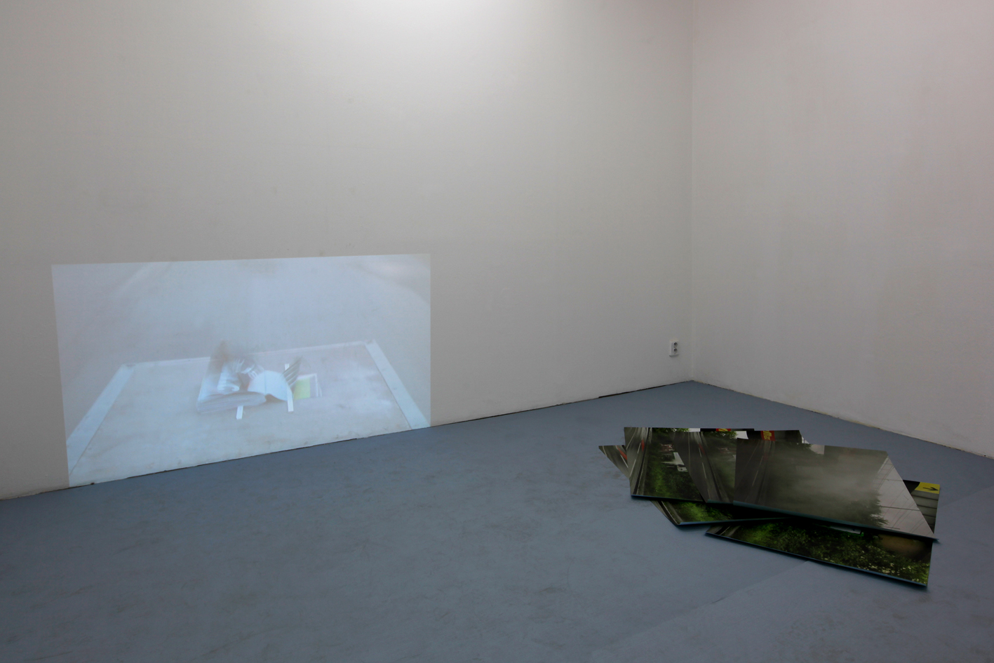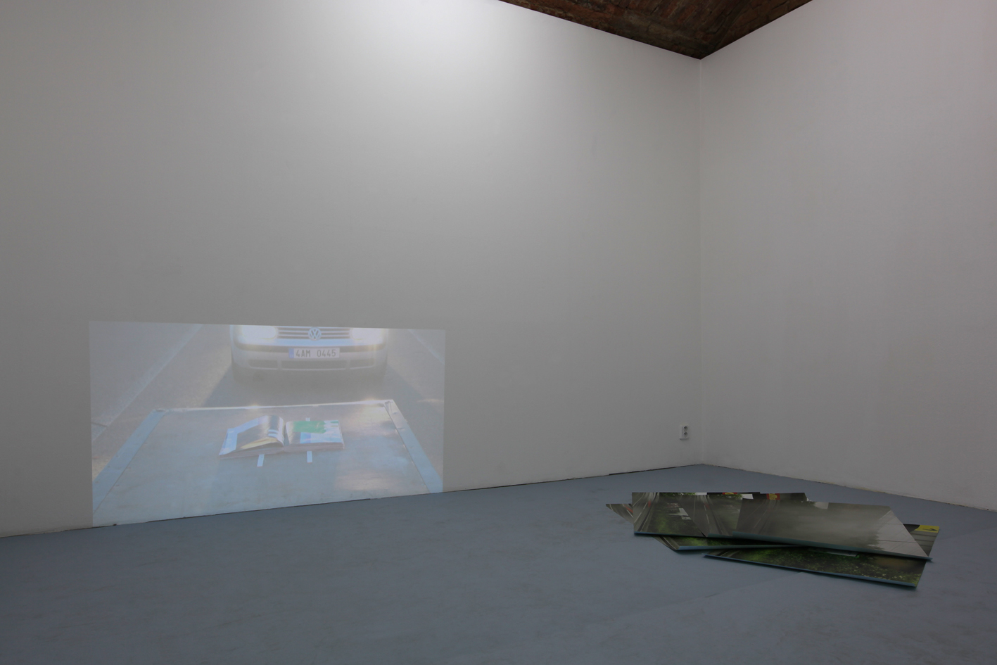 Klíčovým předmětem je v této instalaci kniha, která byla fyzicky k vidění pouze na vernisáži a navíc mimo samotný prostor galerie. Divák výstavy by se tedy mohl cítit podveden. Jenomže jak nejlépe prezentovat knihu v galerii? Co je to intimita předmětu, jakým je kniha? A co je to vlastně kniha? Dokáže existovat jen s jejím čtenářem nebo samostatně, tedy doslova sama sebou listovat a číst se? Musíme se knihy dotýkat nebo si knihu představovat, tedy vnímat ji i bez její fyzické přítomnosti? Kniha na této výstavě prochází zdvojenou metamorfózou předmětu povahy veřejné do podoby osobní a zase zpět. V přítomném videu lze tuto knihu rozpoznat pouze v její vizuální podobě, kde se abstraktní plochy prolínají s fragmenty slov nedávající žádný smysl. Zdá se, že kniha je tu zdrojem tiché, všudypřítomné síly a může být proto čtena z kterékoliv strany. V jednoduchém záběru se díky náhodě překvapivě otevírá v obvyklém směru. Z již zmíněných souvislostí si můžeme vyvodit, že obsah knihy se váže k produktu nabízeného formou velkoformátové reklamy. Snad se divák nebeude cítit ochuzen, když zde prozradíme, že onen produkt je několikátým pokračováním českého komediálního filmu. O tomto snímku jsme my účastníci vernisáží v podobných místech, jako je tato galerie, mnoho slyšeli, ale nikdo tento film nechtěl vidět proto, aby nebyl před ostatními zahanben.