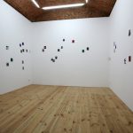 Cyklus Black Metal, který Milan Ladyka koncipoval pro galerii 35M2, lze považovat za autorovo hledání ideální jednoty nebo jakousi syntézu jeho dosavadních postupů a zobrazených motivů. Milan se v aktivní roli hudebníka, literáta, ilustrátora a výtvarníka poslední dobou vizuálně vyjadřuje především skrze techniku papírové koláže kapesního formátu. Na tomto médiu ho vzrušuje možnost redukování popisu až na hranici abstrakce. Láká jej zběsilost množení, rytmizace a monotónnost tematických celků. V neposlední řadě využívá skvělou příležitost nepřímého poděkování pánům Matissovi či Warholovi za jejich inspirativní práci. Pozoruhodným pokusem o dialog mezi dvěma médii je například jeho cyklus Sad Pony Guerilla Girl (2011). Autor zde „přeložil“ videoklip hudebního projektu Xiu Xiu (klip sám o sobě spočívá v minimalistické montáži fotografických momentek) do řady koláží umístěných ve funkční osnově bezprostředně vedle projekce matričního videa. Většina jeho obrazových sérií se ovšem inspiruje světem sociálních sítí nebo internetovou estetikou. Aktuální konvolut obrazů spontánně mapující prostor galerie má evokovat pohyblivou nástěnku s profilovými fotografiemi členů dvou kontrastně rozdílných skupin. Instalace akcentuje charakteristickou proměnlivost a dočasnost informací. Metalisti přicházejí se sítě skutečné a kaktusáři ze sítě fiktivní, ale stejně možné a pravděpodobné. Oba dva cykly překvapivě spojuje nejen obsah (folklórní podstata zhodnocování volného času, extatická posedlost, potřeba vzájemného dialogu a šablonovité identity) ale i podobnost čistě znaková, formální, téměř morfologická. Ostré tvary, kontrast černé a bílé, atmosféra děsu nebo extrému jako dokonalé mimikry zastrašující potencionálního nepřítele. Samotné kresby vznikají stříháním a řezáním barevného papíru. Vše se děje bez kresebných příprav, s „lehkovážnou pečlivostí“ a v dynamickém procesu vrstvení, kde hraje důležitou roli malířská vztahovost, grafická stylizace, interakce a princip náhody. Práce s barevným papírem svým způsobem jitří vzpomínky na dětskou senzibilitu. Nejde o mechanické reprodukování, ale o volnou bytostně výtvarnou interpretaci fotografických předloh virtuální povahy, jejich toužebnou a nevratnou materializaci. Koláže Milana Ladyky oživuje nutný paradox. Mají schopnost probouzet utahaného diváka z apatie svojí líbeznou předmětností a současně jej přimět k zamyšlení nad fotografií jako takovou, nad majestátem i fetišismem nejvíce automatického média. Michal Pěchouček