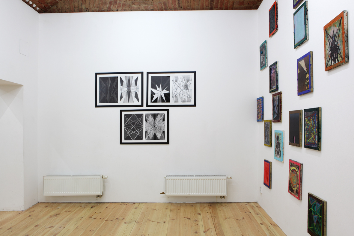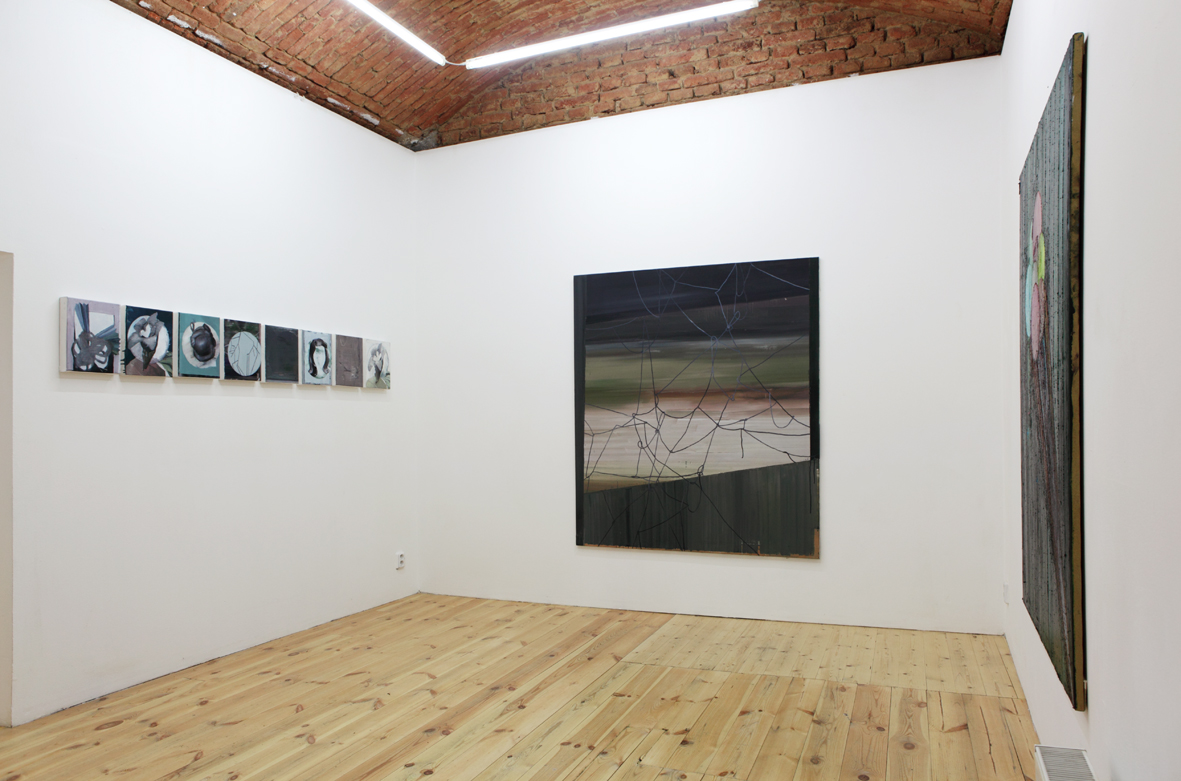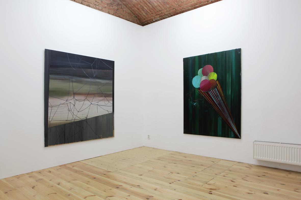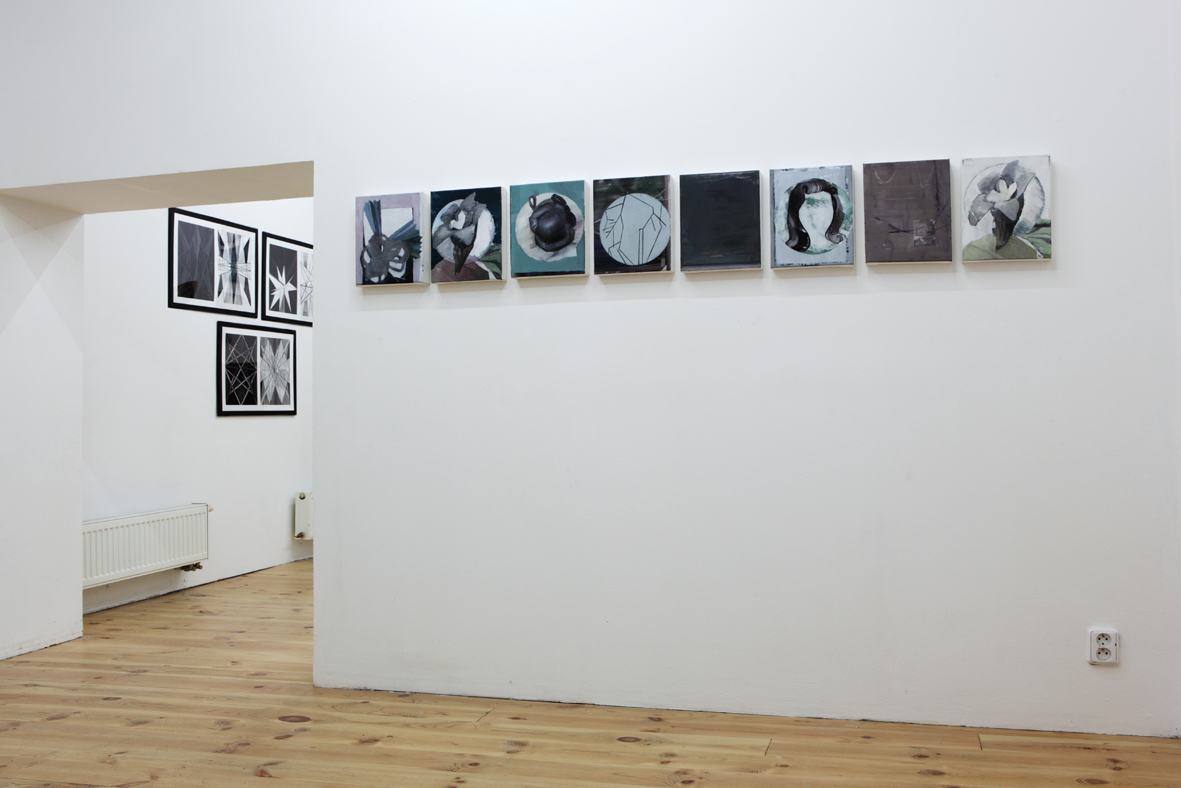 Divák této výstavy si nemůže nepovšimnout všudypřítomný a vzájemný vliv dvou pozoruhodných individualit. Podobnost (nejen formální) na první pohled evidentní, je natolik propletená a silná, že nelze rozlišit konkrétní směr a kauzalitu inspirativního vlnění. Monika i Vladimír studují na stejné škole v různých malířských ateliérech a věnují se výhradně expresivní malbě nebo kresbě. Oba dva se vědomě vrací k malířské avantgardě jako k důležitému orientačnímu bodu, aby mohli vyprávět svůj dnešní a osobní příběh o romantickém vztahu k médiu závěsného obrazu. V nových souborech, které zde prezentují, si evidentně notují v modernistických kompozicích, kolážové estetice kubismu a v lhostejnosti k iluzionistickým zobrazovacím konvencím. Malba je tu převážně chápána jako objekt nebo plocha zrcadlící sama sebe. Tyto malířské strategie lze vystopovat paralelně a nezávisle u obou autorů, stejně jako subtilní, ale zásadní rozdíly v jejich naturelu i pohledu na věc.
