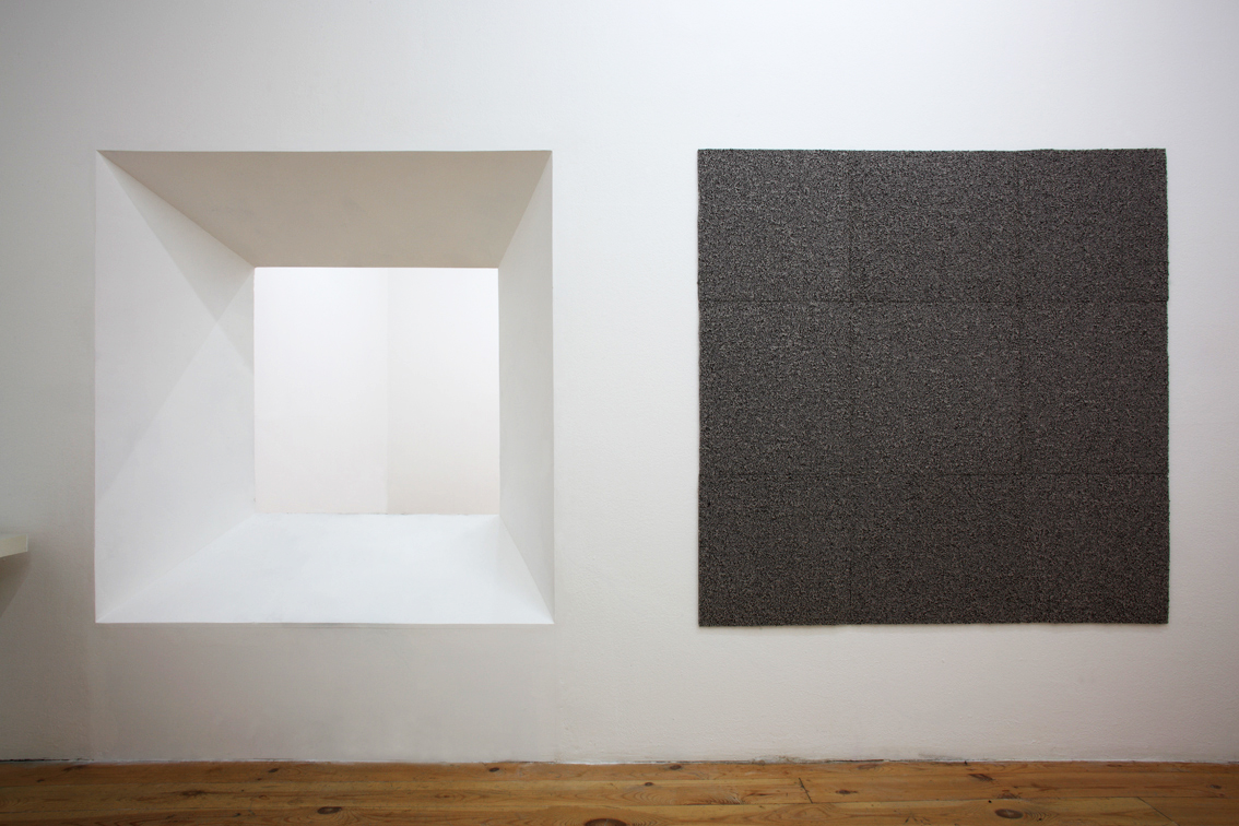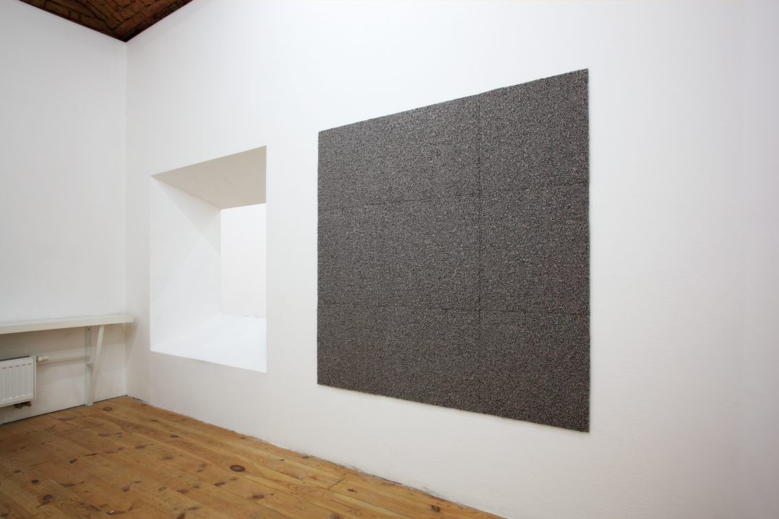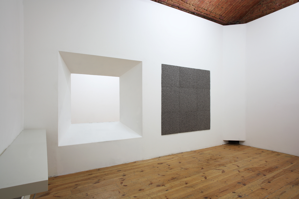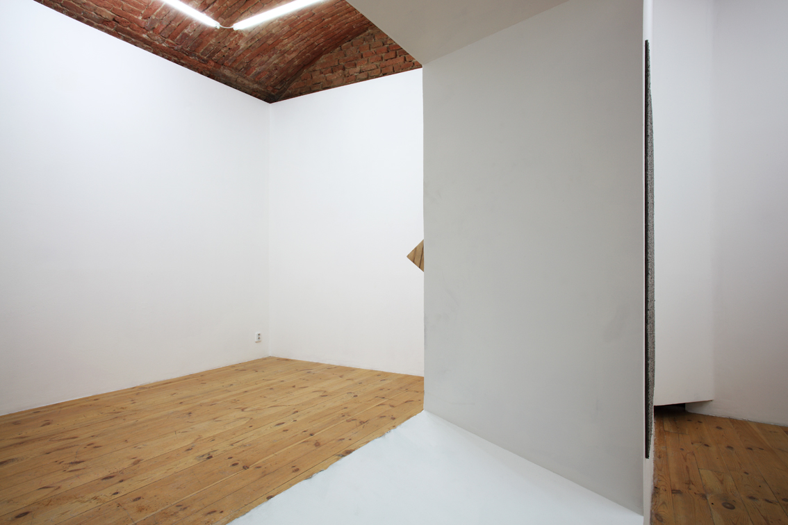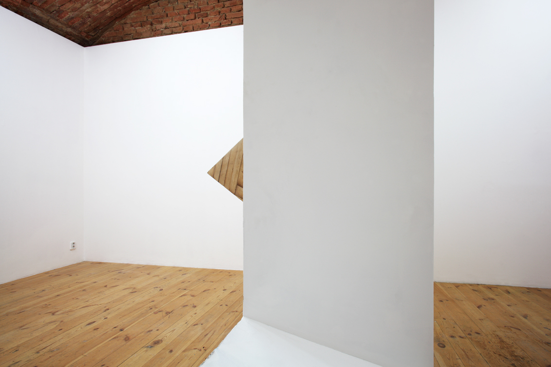 Pro Galerii 35m2 Nikol Kutíková navrhla nové architektonické uspořádání, kde nalézáme tři klíčová znamení v podobě bodu, pohledové linie a plastického tvaru. Bod, k němuž se vše ostatní vztahuje, sedí na vrcholu pahorku v podobě jehlanu. Pahorek je horizontálně orientovaný a visí v nepřístupné místnosti. Jehlan iluzivně prochází zdí, kde uvízla jeho základna. Linie zde určuje perspektivu možného pozorování zmíněného bodu viditelného pouze zvenčí skrze portál, byť samotným portálem částečně cloněn. Dráha divákova pohledu se zde omezuje na maximum. Plastický tvar – architektura pozorovatelny – striktně rozděluje prostor na zadní a přední, vnitřní a vnější.