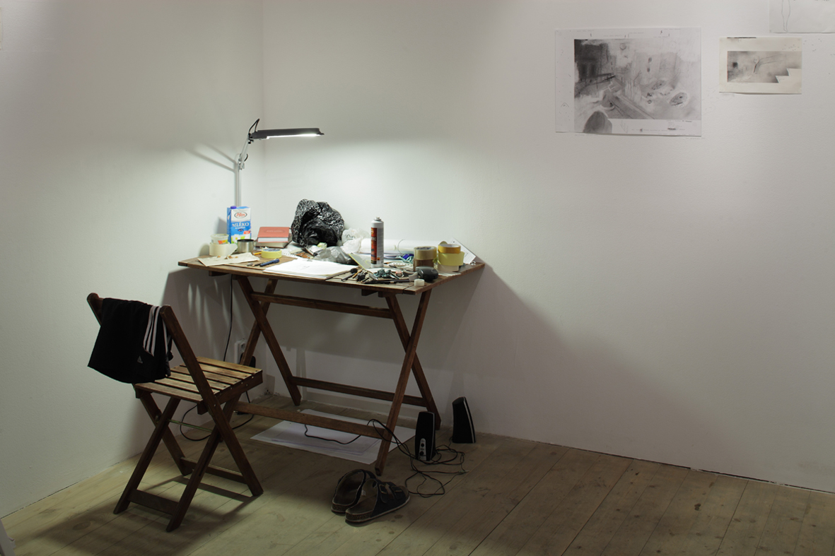 Mluvili jsme s autorem již na prvopočátku o jakési kreativní trémě, o neuklizené tvůrčí laboratoři umělce samotného, o toužebně možném pohledu do jeho mentální dílny, pohledu odhalujícím, kompletním a zároveň neuspořádaným. Navíc se fotografický dokument této akce tímto okamžikem stává seriózní částí autorovy diplomové práce.