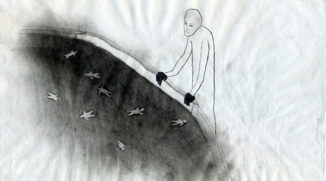 Proto využívá každou příležitost z dlouhé chvíle zahánět kresby do tmavého kouta, rozpomínat si na citoslovce nebo bláboly znějící jako poučky, popisující řád i chaos věcí, prostě všeobecný zmatek, kde se hrůza a humor potkávají v úzké spojitosti.