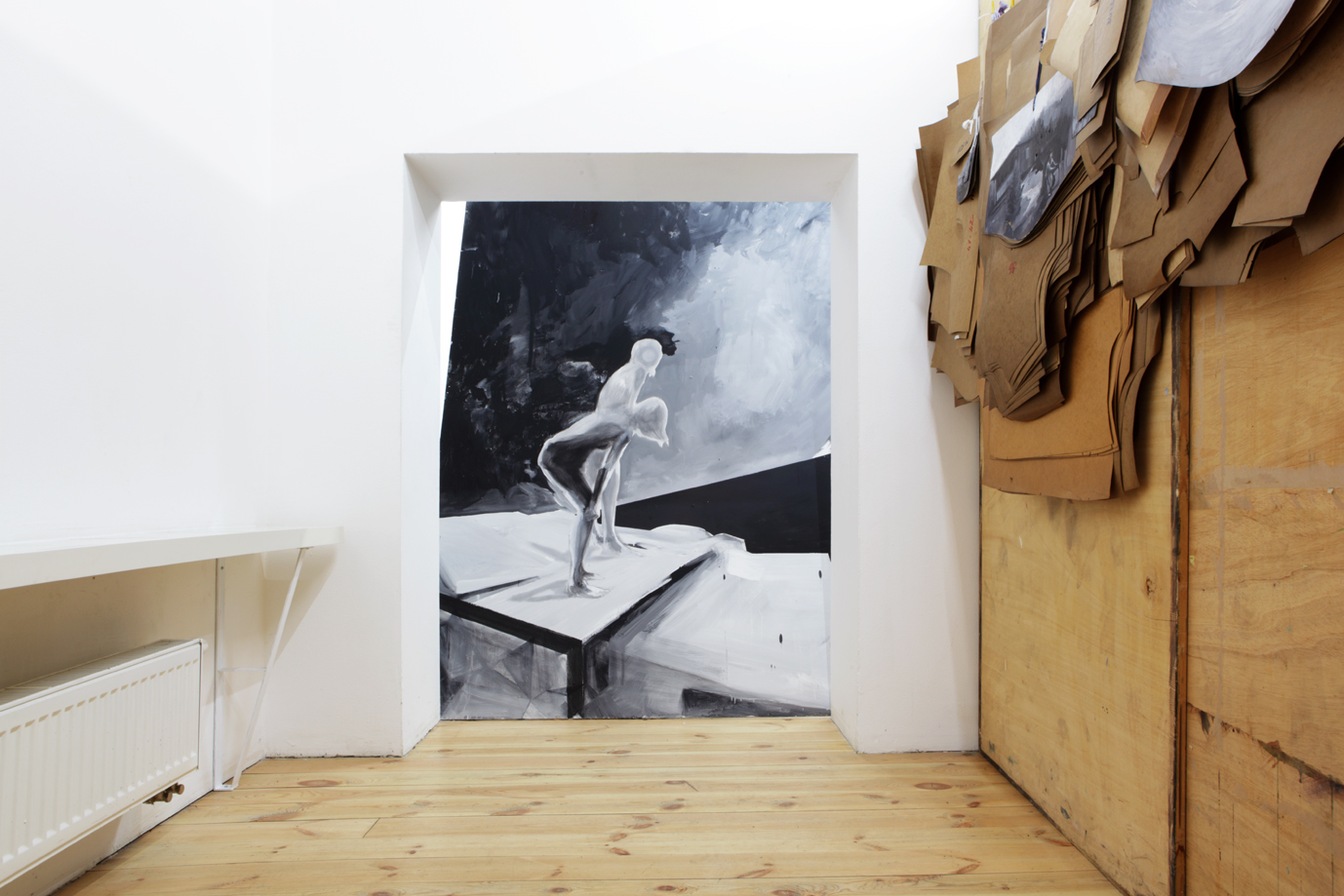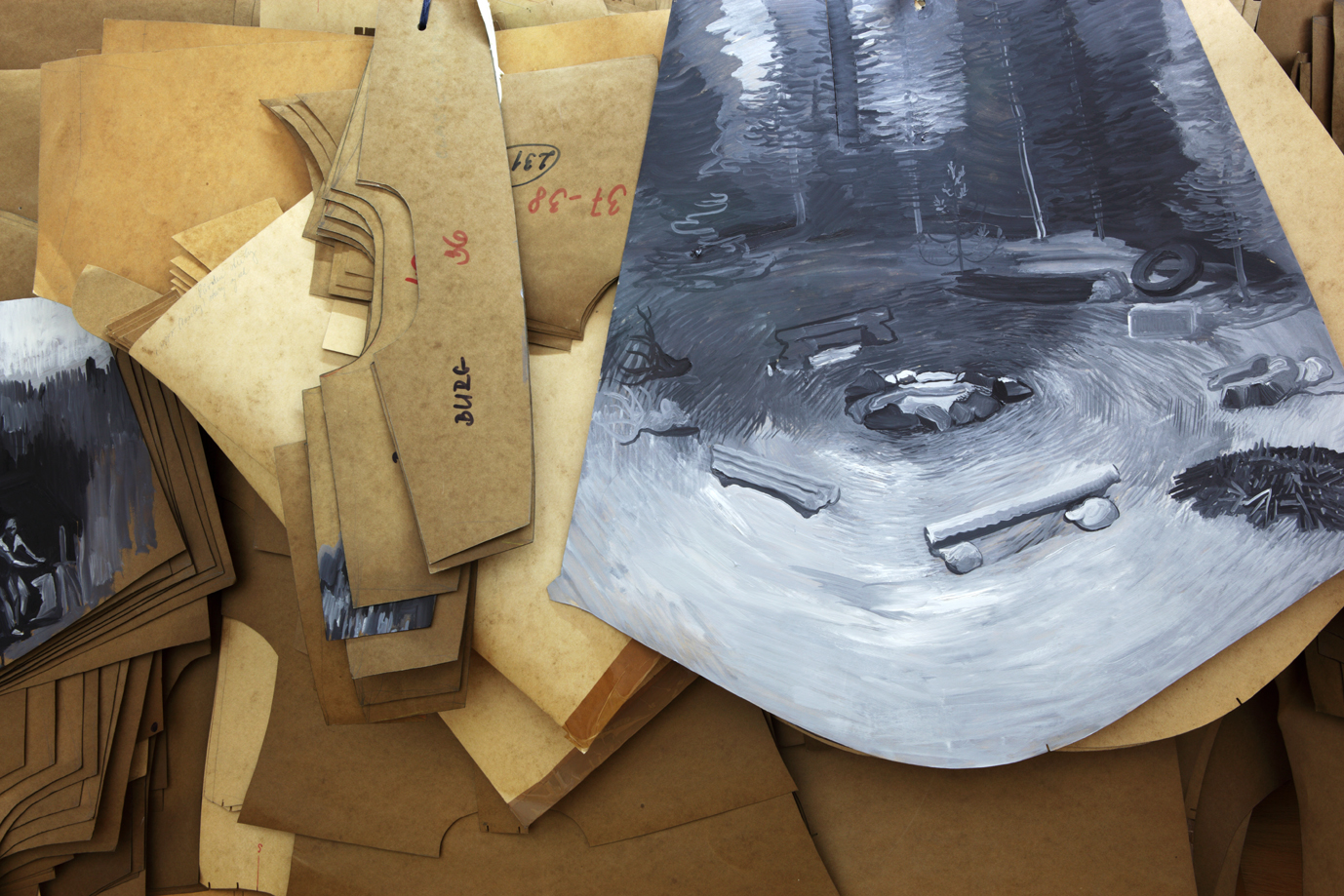 Autor této instalace si už stačil vydobýt pozoruhodnou pozici malíře posedlého organizováním prostoru, nejen toho galerijního. Pracovna Ondřeje Basjuka totiž spíše než malířský ateliér připomíná modelářskou dílnu uprostřed sezóny. Návštěvník dílny tu může okamžitě zavětřit blízké echo historie avantgardního umění a aktivní důvěru v modernistické praktiky. Ondřej sám budí dojem pozitivně naladěného diplomata, rozhodnutého neopouštět svět umění a romanticky lpět na kvalitách neopakovatelnosti tradičního média malby. Zároveň tohoto autora fascinují netradiční malířské materiály, ready mades, porušování instalačních konvencí, dekonstrukce, malba jako objekt, objekt jako malba, iluzornost zobrazování, koláž a asambláž nebo recyklace vlastní tvorby. Neobvyklé tvary jeho obrazových formátů vznikají lapidárními geometrickými posuny v ploše i prostoru nebo použitím existujícího nalezeného odpadu, jehož tvar je určující. Malířské formáty ignoruje pomocí dioramatických výřezů nebo použitím hlaviček hřebíků jako podkladu k malbě. Často tímto způsobem zobrazený motiv zdánlivě izoluje od skutečného formátu a záměrně fetišizuje jako objekt, který komunikuje s širším okolním prostorem.