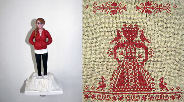 Přítomné i nepřítomné mateřství je oběma autorkami reflektováno v dalších artefaktech. Soužití žen různých generací pod jednou střechou přivedlo Moniku Novotnou k práci na velkoformátové mozaice (Zdiša kojí Julču 2014). Fascinující stav, kdy se před námi zhmotní lidská nesmrtelnost, autorka vlila zpátky do obrazu madony – její vlastní sestry s dítětem. Pečlivý obraz je záměrně technikou i svým výrazem pomalý. Délka jeho výroby upomíná na délku času, po kterou je tento obraz pro lidi posvátný. Postava s dítětem je u obou umělkyň částečně vizí, snem a částečně skutečností. Plastickán nebo namalovaná reprezentace našich představ osvobozuje. Tím, že obraz z vnitra vyloupneme ven, uděláme ho hmatatelným. Ke svému tělu jakoby přidáme novou končetinu, která by bez toho rostla dovnitř.