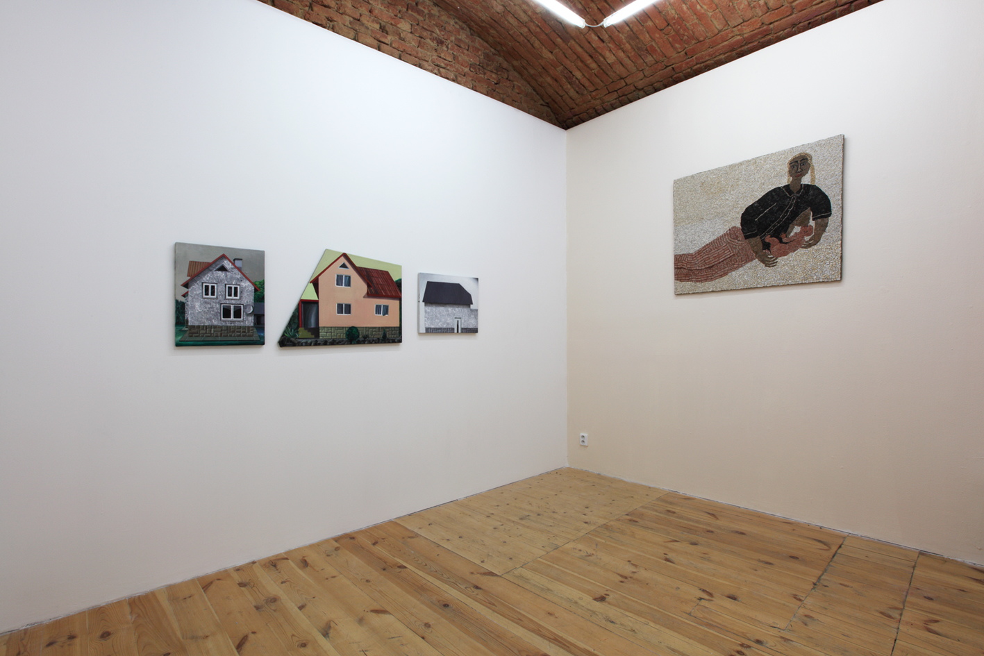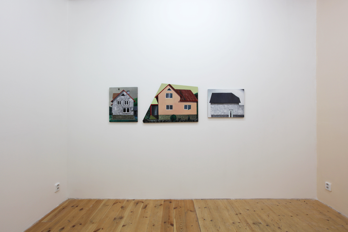 Pro Galerii 35m2 obě autorky připravily skladbu nových i starších děl, které boří a tvoří mýtus rodiny. Dům rodičů a babičky je Petrou Brázdilovou zaznamenán z různých uhlů a v různých barevnostech. Na plátnech jsou věcně zachyceny zdi, které ji v dětství obstupovaly a ze kterých už vyrostla. Ačkoliv jsou barvy vůči skutečnosti posunuté, Petra se vyhýbá vypočítavosti v kompozici a kolorování pro efekt. Chce malovat s odstupem a pouze zaznamenat stav věcí. Podle svých slov tak: „jak by to dělali místní, před vynálezem fotoaparátu“. Neživý objekt se přes to chová jako chameleon, který se zbarví podle toho, který z kolemjdoucích nebo jeho obyvatel, se na něj právě dívá. Pro někoho skrýše, splněný sen, pro jiné zátěž. Dům na plátnech je přistižen jako uličník ukrývající tajemství – všichni ho vidíme a dokonce známe i to tajemství, ale víme, že nám ho neprozradí.