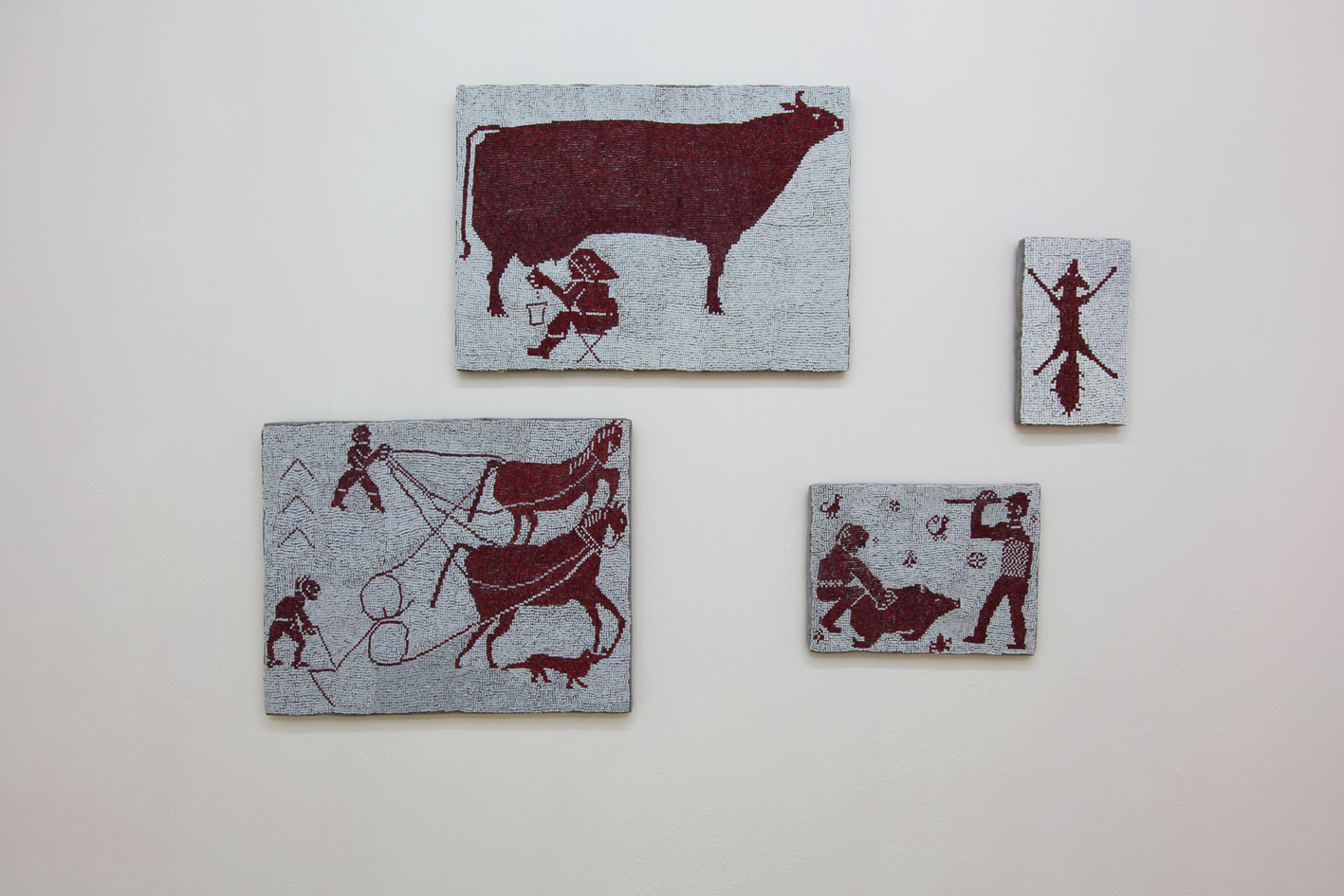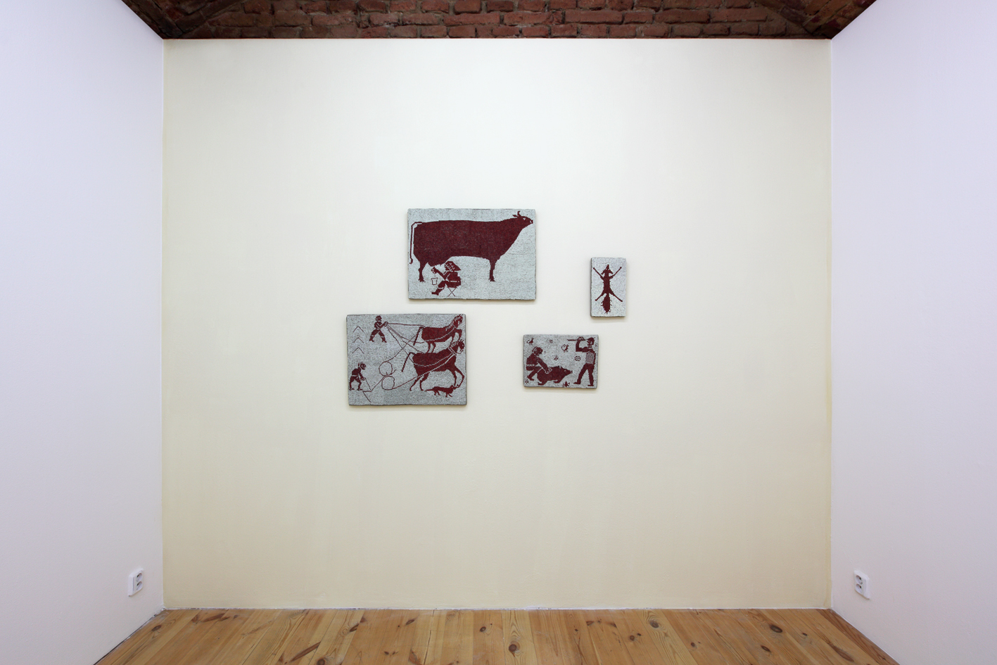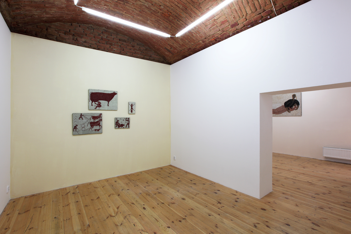 Obě autorky vyrůstaly na Moravě, přesněji Monika je Hanačka a Petra je Valaška. Mají podobný zemitý, spontánní temperament a vlídný měkký přízvuk někoho, kdo dobře ví, že když se bratranec žení nebo sestřenka vdává, tak je vzhůru nohama celý dům nejmíň půl roku. Obě absolvovaly malířské studium na Vysoké škole uměleckoprůmyslové v Praze, ale jejich výrazové prostředky a témata jsou širší, než je u městem zviklané umělecké populace běžné. Petra Brázdilová se kromě odvážné a nepodbízivé malby (Mapa světa 2010) věnuje kolážím i objektům. Dokáže s vtipem a nadhledem komentovat kutilskou vášeň svého otce – neustálé zvelebování domova (cyklus komentovaných fotografií Celoživotní práce 2011). Monika Novotná má blíž k rudimentárním formám a významům. Zdlouhavou technikou mozaiky buduje ikony venkovského života (Zabíjačka 2013, Stahování lišky z kůže 2013, Babička dojí krávu 2013). Na mozaice Babička za mlada (2013), která je na pozvánce k výstavě, autorka zreprodukovala miniaturní fragment z výšivky, ze kterého se na nás dívá mladá žena. Je to stejná žena, která později přivedla na svět Moničinu maminku a stejná bytost, která se stará o zvířata a pole. Mozaika redukuje dění kolem autorky na znaky v nízkém rozlišení, ale vysoké důležitosti. Barevně střídmé výšivky tvoří piktogramy pojmů, bez kterých na vesnici, ale ani ve městě nejde žít. Domácí zvířata, pole, ženy a práce jsou vyobrazeny bez kalkulování úsporným znakem. Tak jak to dělaly babičky, které sice v Praze na umprumce nestudovaly, ale vyšvihnout logo ženicha s nevěstou na ubrus zvládly rychleji, než zhasla svíčka.