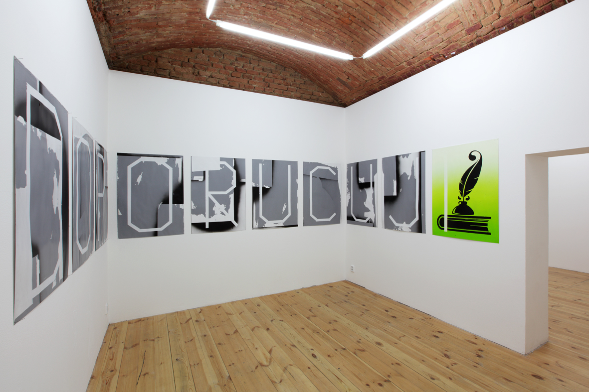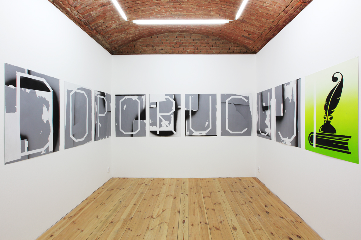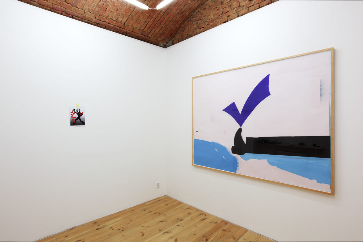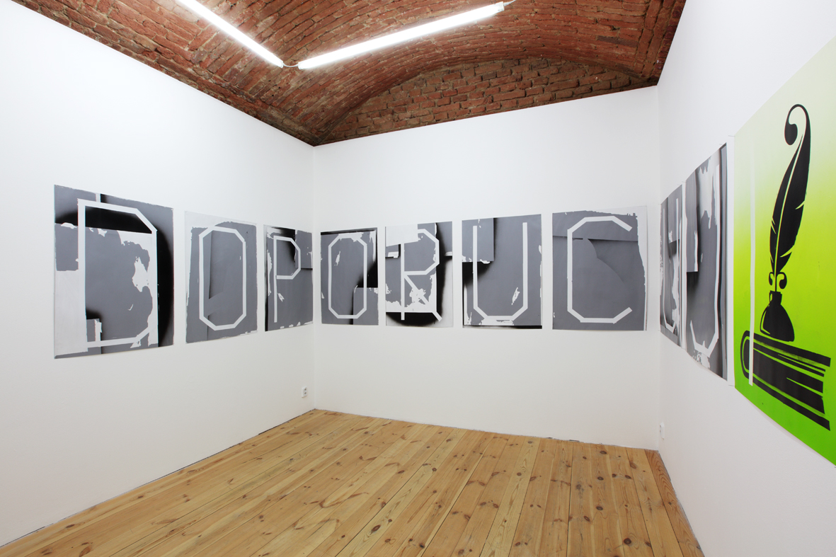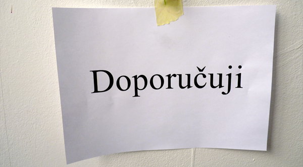 Aktuální výstava v Galerii 35M2 volně navazuje na nedávný společný projekt s Dušanem Zahoranským Slovo dalo slovo (Meet Factory Praha) – v nedávné době zřejmě nejzásadnější manifest současných podob vizuální poezie. Měl v sobě jako výstavní celek cosi vášnivě loveckého, protože se tu dávalo na odiv, že lze slova a věty chňapnout jako kořist a ukazovat jako vycpaninu. Šalanda v pytlačení v jazykovědném háji pokračuje dál, tentokrát na vlastní pěst. Název této výstavy se významově překrývá s vypíchnutým motivem v podobě zatržítka. Tvar tohoto grafického znaku koresponduje s jednoduchou motorikou, s výmluvným a expresivním pohybem končetiny, která se chápe, zmocňuje, nakopává. Opět v kořistnickém duchu, neboť gesto působí přímo na skutečnost. Znak zatržítka i emblematický nápis DOPORUČUJI má působit jako příkaz a upozorňovat na co myslet nebo ve jménu čeho a proč myslet. Tento způsob oživování obrazu vnitřním slovem nebo vzývání jako by mělo vyvolat chtění, či snad dokonce teleporticky vyvolat děj na větší vzdálenost. Zároveň není vůbec jisté, zda li tato výzva k aktivitě bude vůbec vyslyšena. V obrazech Roberta Šalandy se totiž nijak nezakrývá lítost nad nevratným oddělením slov od věcí, nad skutečností, že slova se marnivě převlékají, protože už dávno ztratila svoji nahotu.