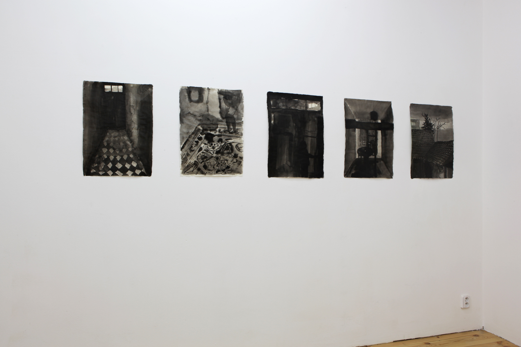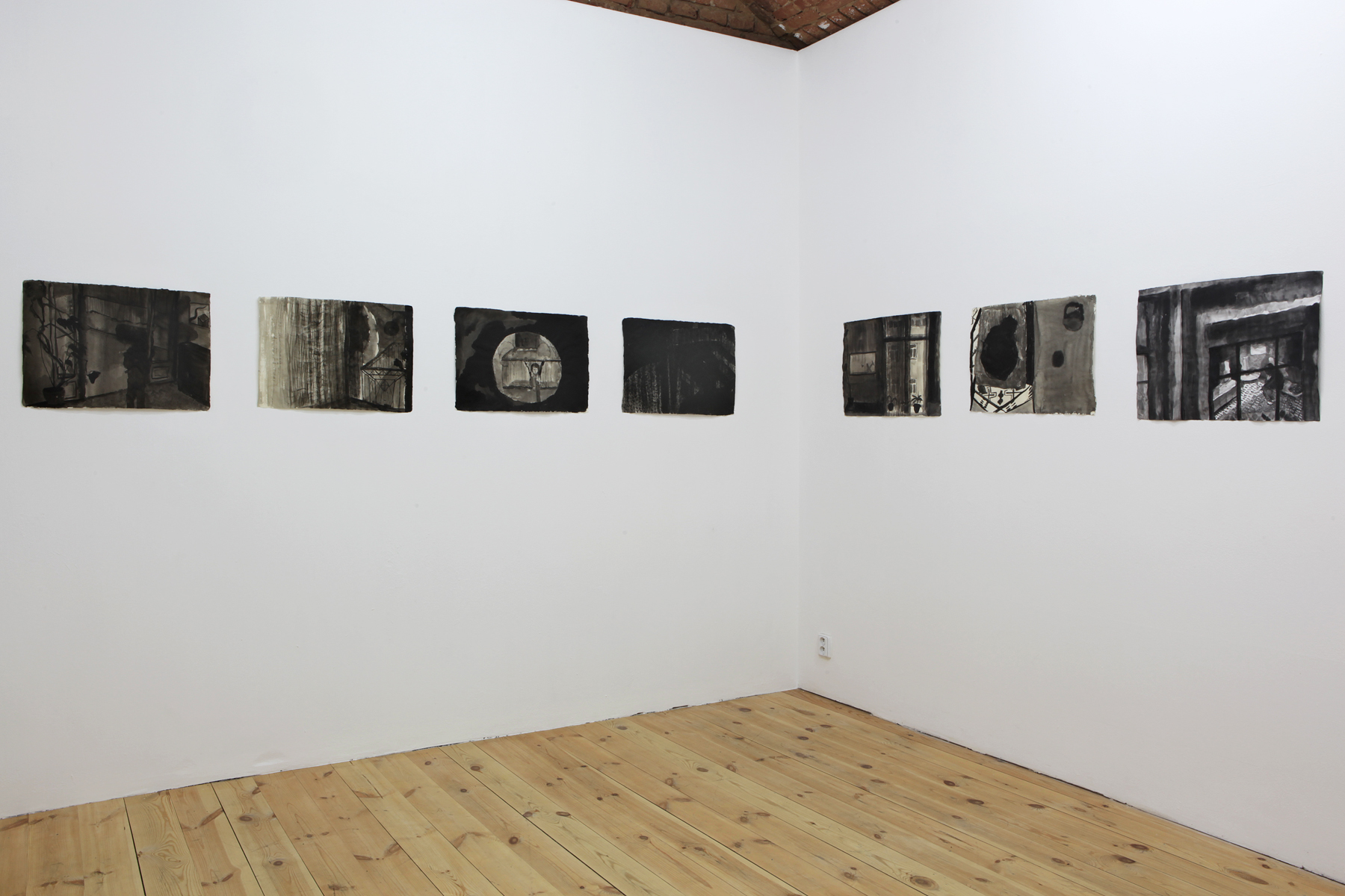 Povaha našich emocí, nálad, pocitů, i našich společenských vztahů se mění a vyvíjí v závislosti na ubíhajícím čase a společně s námi se jeví stále složitější a hůře uchopitelnou. A ačkoliv formálně mohou mnohé lavírované kresby Kamily Zemkové připomínat práce jiných autorů, třeba i z úplně jiné doby, čím více se budeme soustředit právě na tuto citovou linii, tím více si začneme všímat toho, co nám nic známého (alespoň ze světa výtvarného umění) nepřipomíná. Tyhle pocity jsou totiž zcela určitě jiného druhu, než jaké zakoušeli impresionisté nebo fauvisté, není to voyerská vášeň Fridy Kahlo, donekonečna šmírující vlastní knír. Tato místa jsou opuštěná jiným způsobem než domy a předměstí na obrazech Edwarda Hoppera. Melancholii tohoto interiéru, prázdného a přesto protknutého stopami čísi existence Balthusovy lenivé kočky nikdy nepoznaly. A všechno, co tu souvisí s existenciální tísní, není ani připomínkou útisku nebo kritikou nějakého politického či totalitního systému. Tyhle pocity rozpuštěné v tmavých inkoustových skvrnách nejspíš patří nám a do našeho času, jakkoliv se nám může zdát jejich atmosféra nepohodlná. Má ochablá intuice mi našeptává, že rozostřenost a bezvýchodná nebarevná tonalita těchto prací je tudíž zcela na místě. Realita je nejednoznačná.